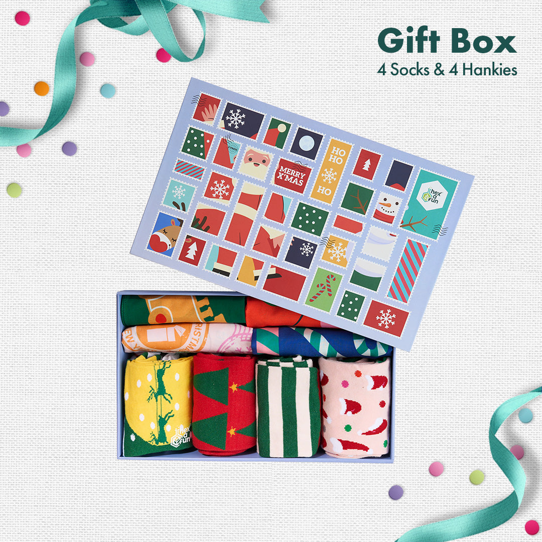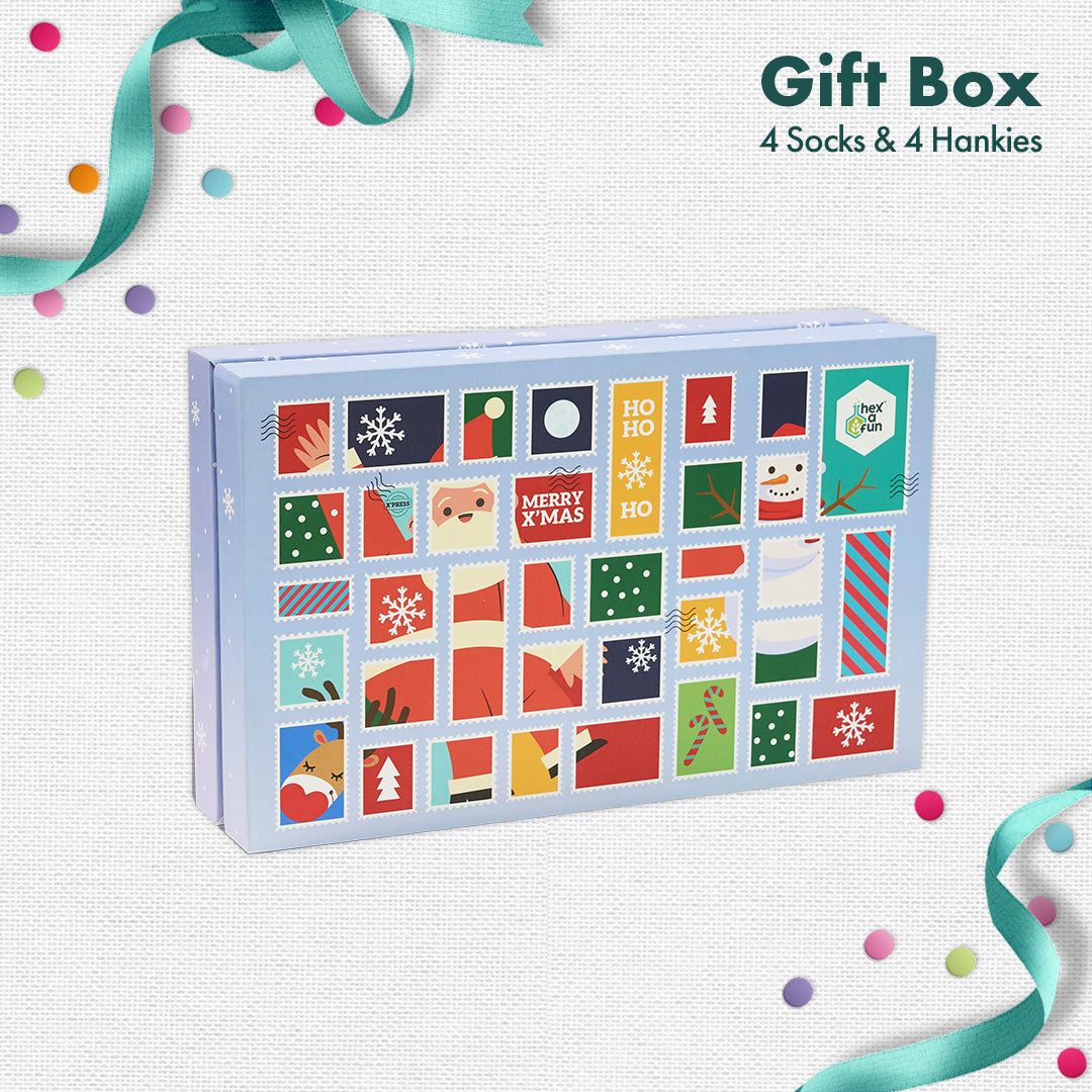What is the perfect gift? One that is full of quirk and intrigue. One that fills your loved ones' lives with joy and wonder, right? We too agree! 'Coz that’s exactly what we’ve got for your loved ones on your behalf. A gift that is nothing less than perfect. Say hey to Xmas Stamps! 4 Unisex Crew Length Socks + 4 Unisex Hankies, 100% Organic Cotton, Gift Box of 8.
