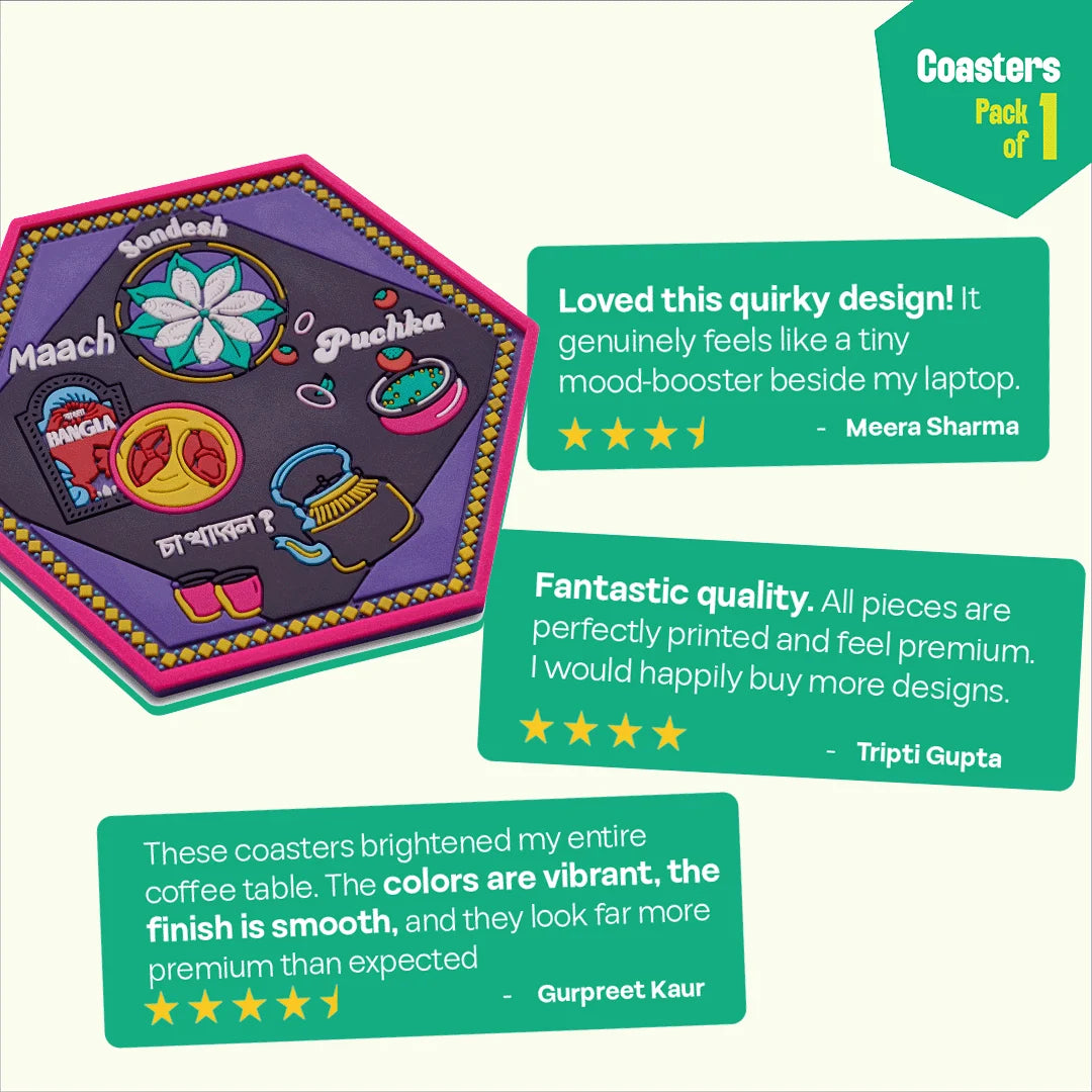 Hexafun coasters bring flavour, flair, and full petuk energy minus the mess.