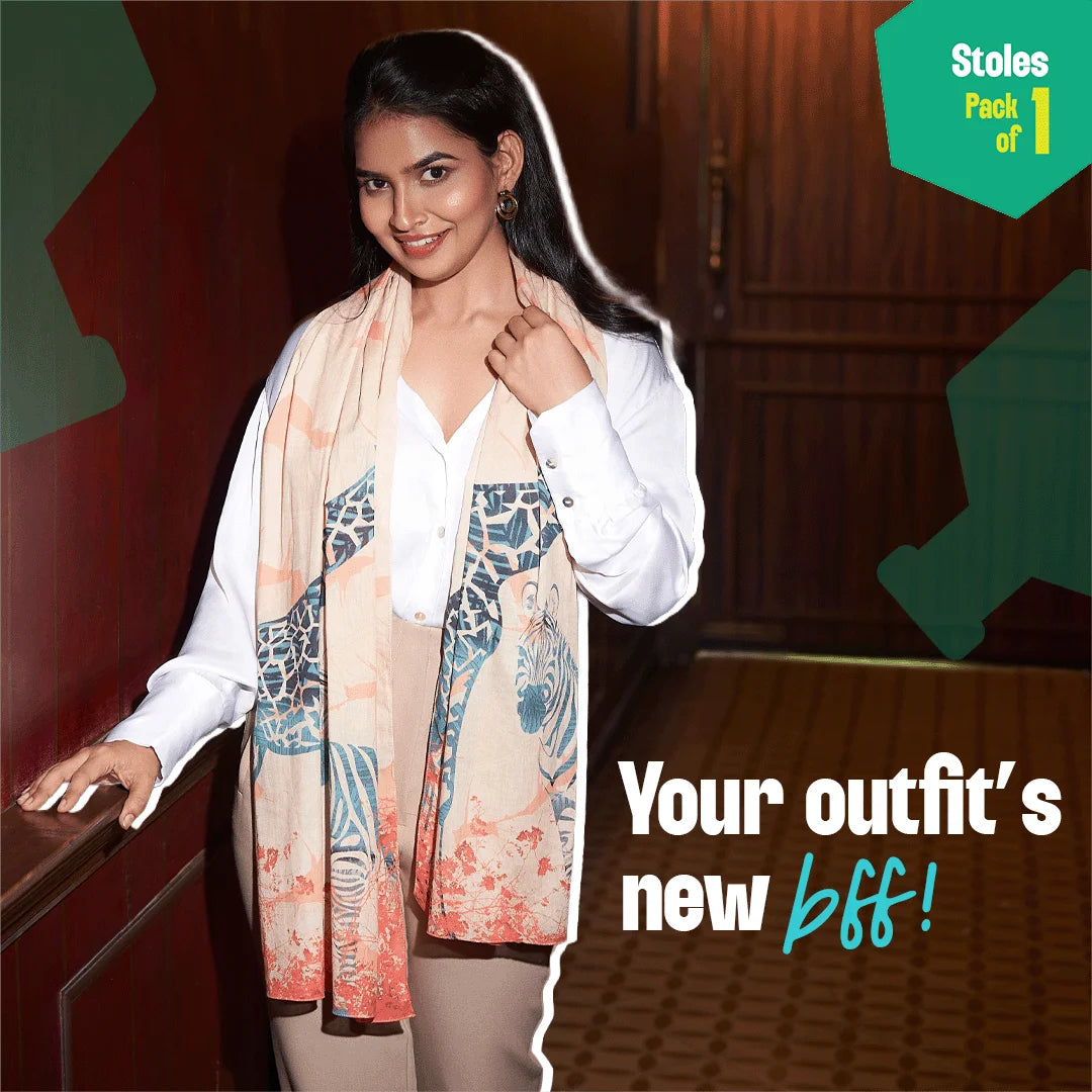Can’t figure out a new look for the party next week? Thank God for hexafun! Welcome to a whole new era full of the quirkiest prints, newest looks, and endless possibilities. An era that’s here to stay forever. Say hello to the Jungle Book! Women's Stole, 100% organic cotton, Pack of 1.