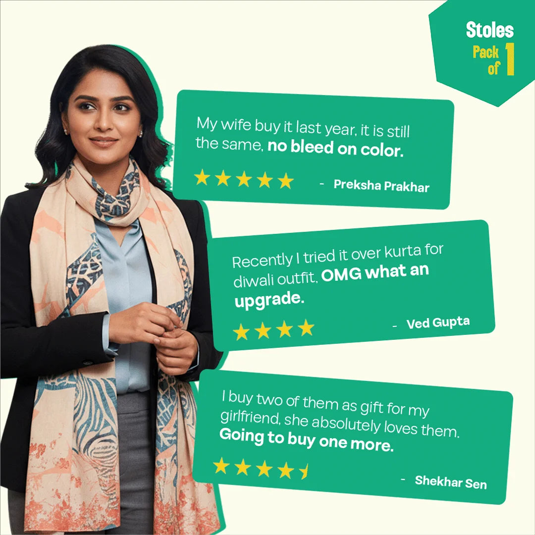 • Quirky & Fun Prints: Escape the beige. Our stole come in a spectrum of playful patterns, letting you express your inner artist.