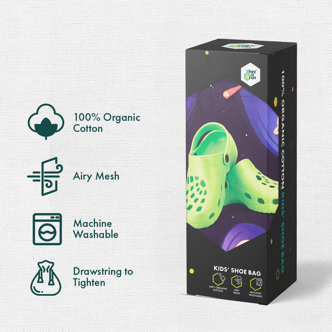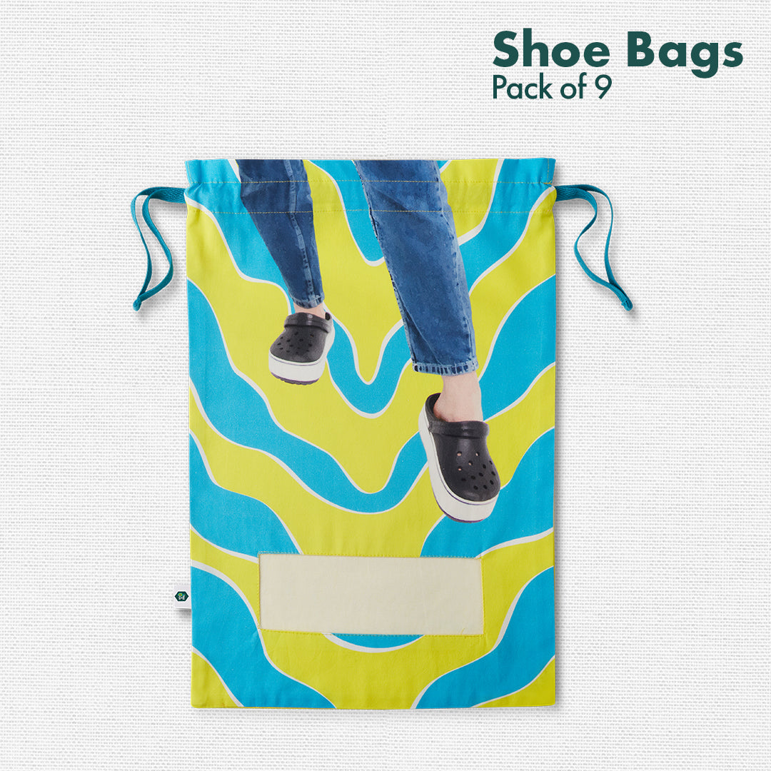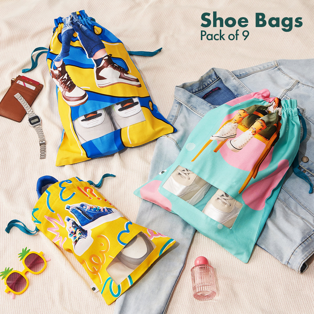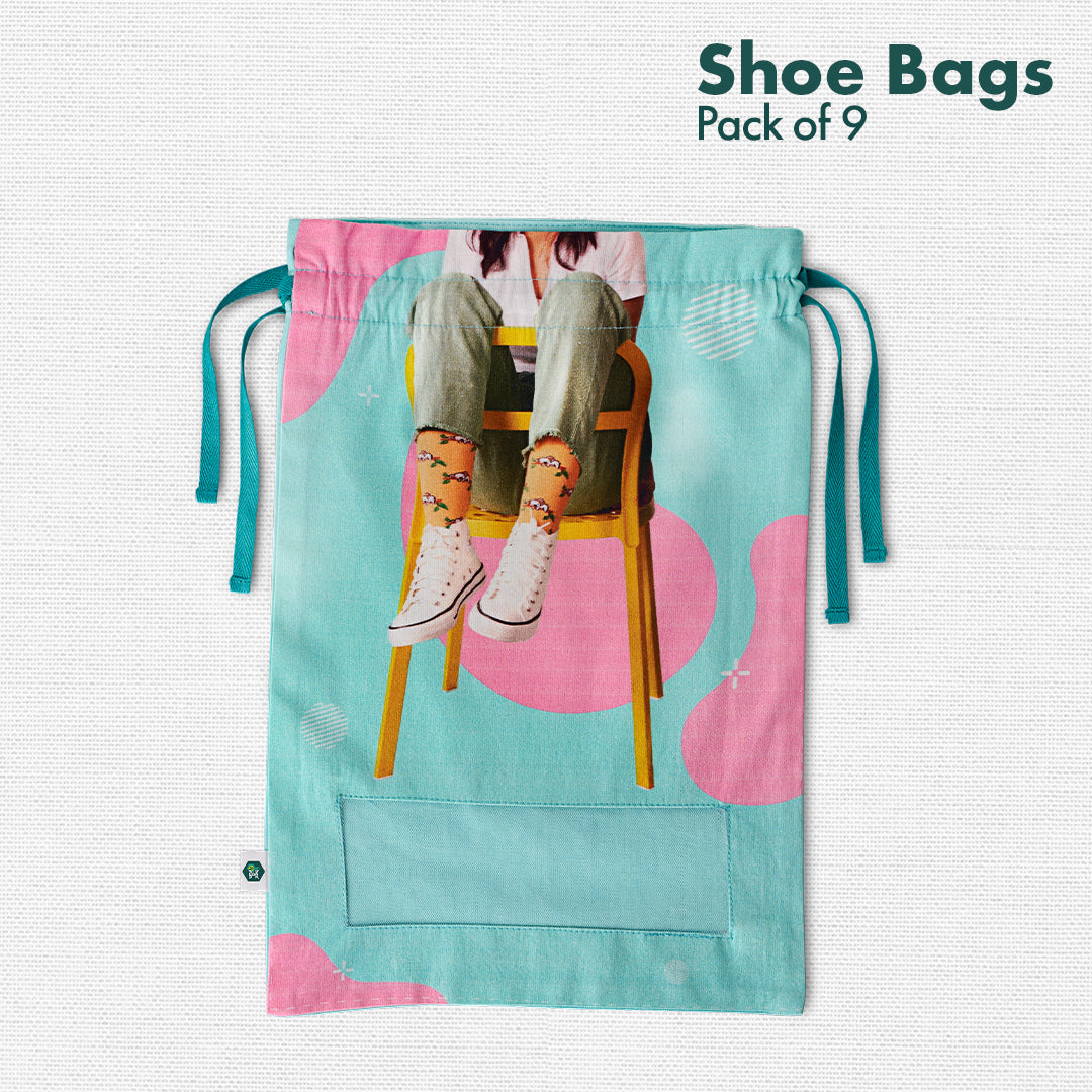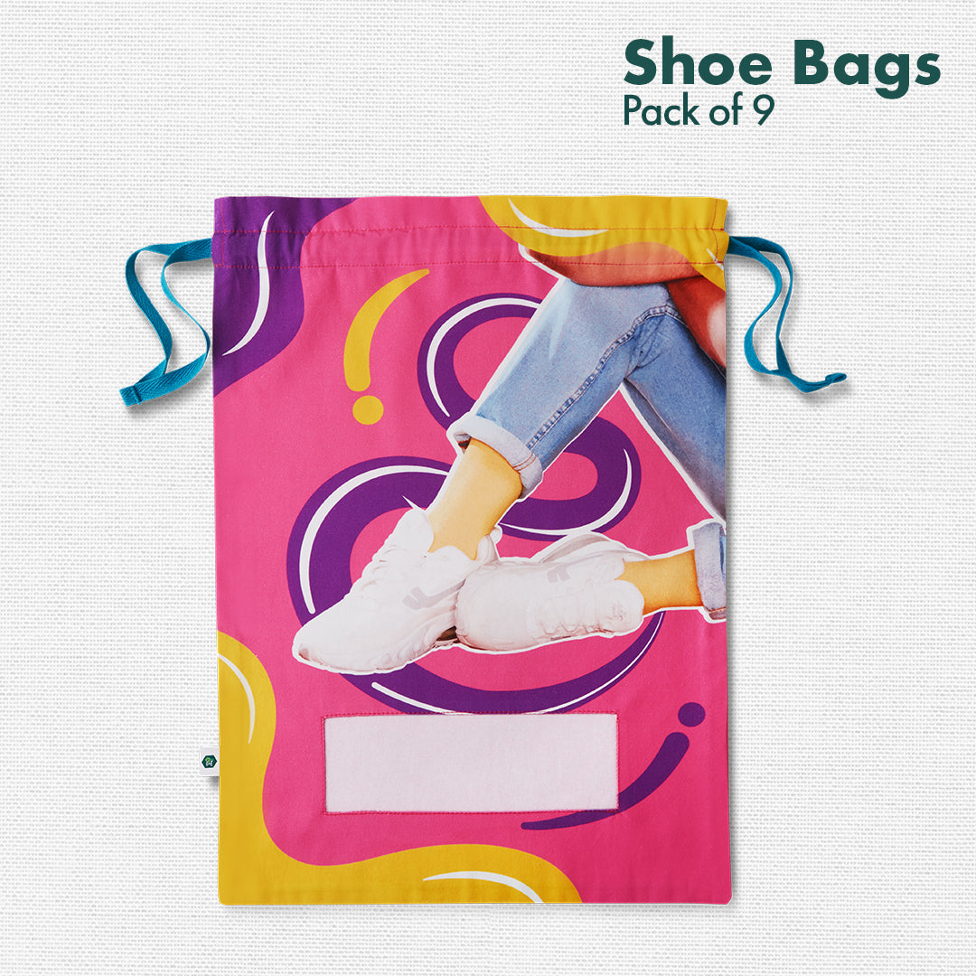 Stylish Outfits? Check. Travel Essentials? Check. Carry Shoes In Plastic? Nah. Unhide Your Organizing Side With hexafun's shoe bags. Paving the way for Modern Family! Family Shoe Bags, 100% Organic Cotton, Pack of 9.Â