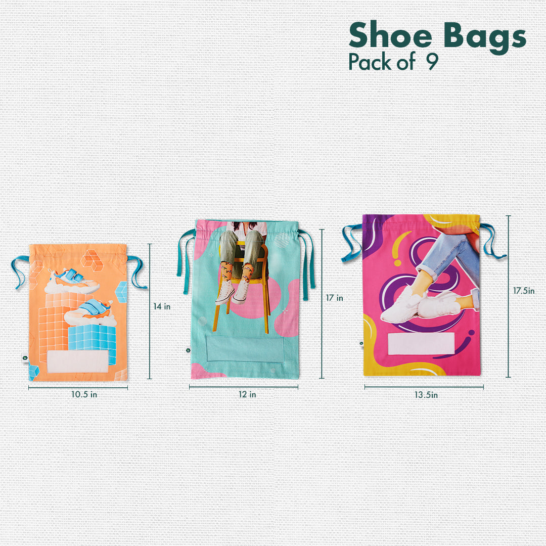 - 0% color bleed: With 0% color bleed, rest assured that your pack of 9 shoe bags set will maintain its vibrant colors wash after wash.