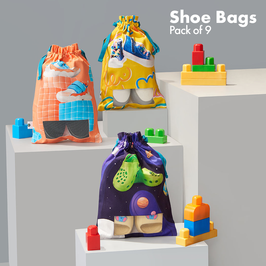 - Drawstring to tighten: Secure drawstring closures keep everyone's shoes contained, no more lost treasures in backpacks or the car!