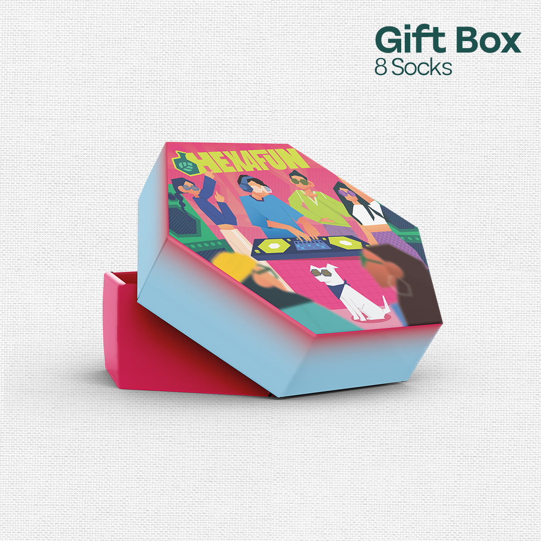 What is the perfect gift? One full of quirk and intrigue? One that fills you with joy and wonder? Great! ‘Coz that’s exactly what we’ve got you. A gift that will be the perfect gift. Be ready for House Party! Unisex Ankle Length Socks, 100% Organic Cotton, Gift Box of 8.