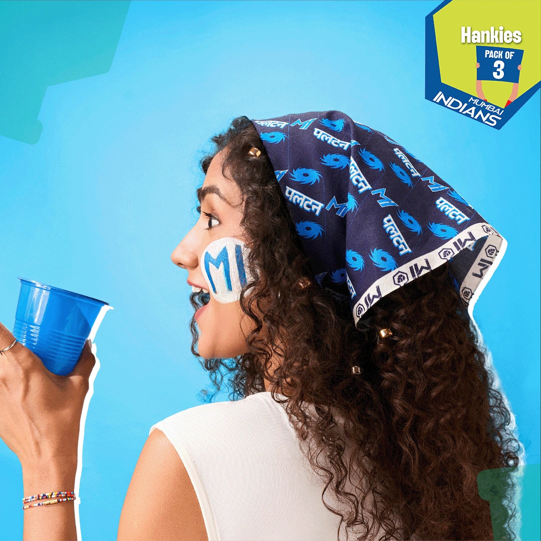 Zoom in; the details are talking back and flexing. Grab a Mumbai Indians blue handkerchief set today.