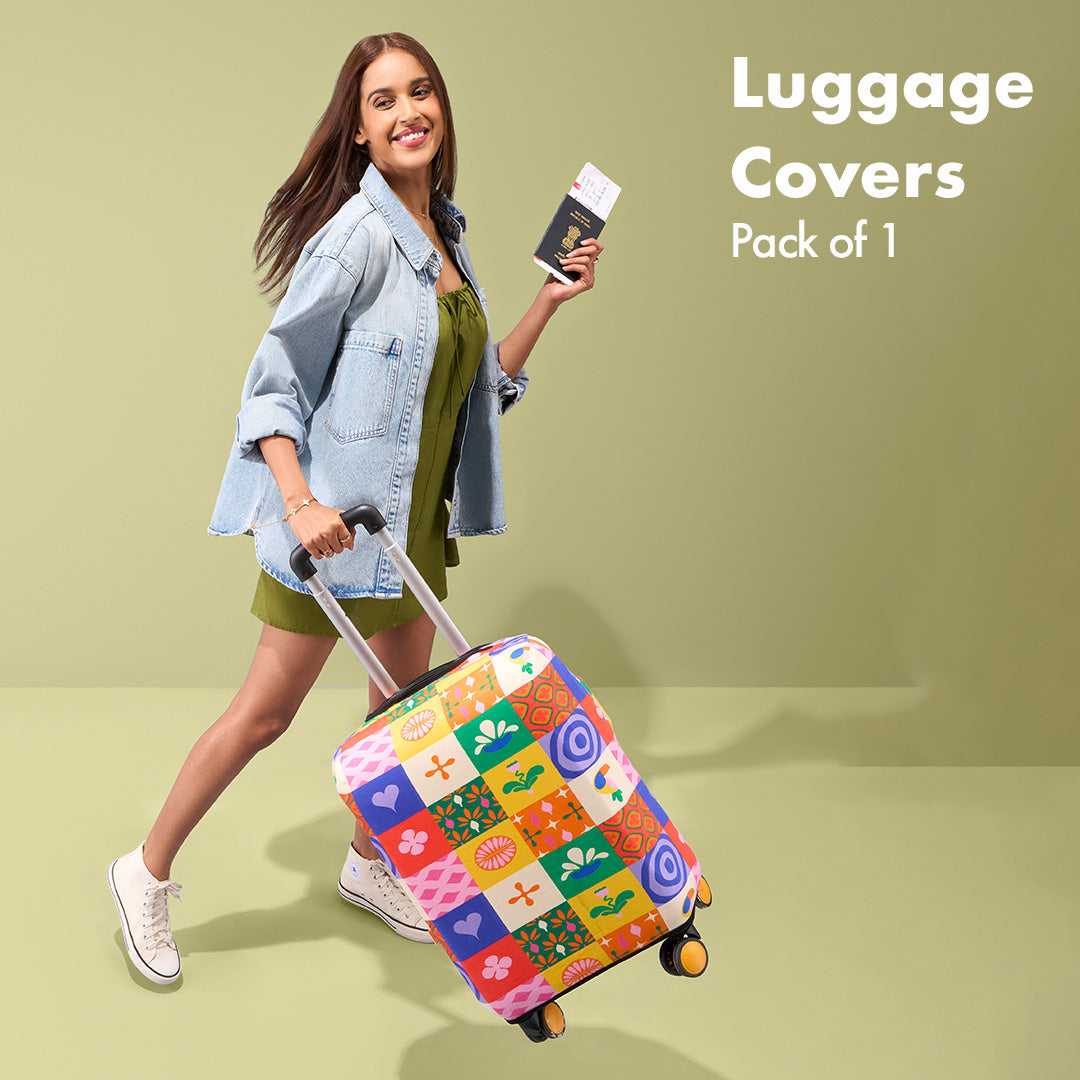 Say sayonara to the days of your plain suitcase blending into the crowd! Give it a fresh makeover with hexafun's vibrant and funky luggage covers. Your suitcase will stand out like a celebrity on the conveyor belt, turning heads and sparking envy wherever you go. Rolling out the Abstract-ology! Luggage Cover, 100% Organic Cotton Lycra, Medium Size, Pack of 1.