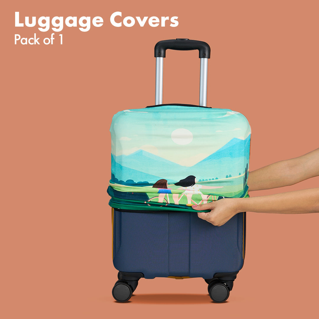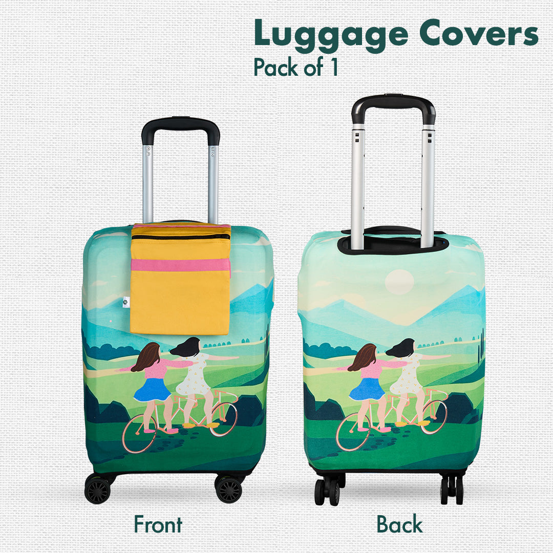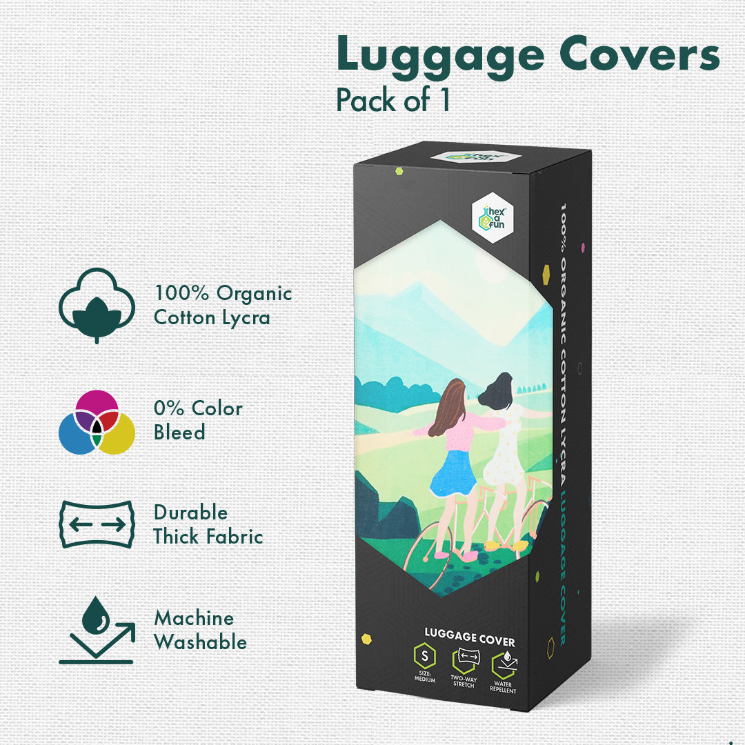 Making Memories! Luggage Cover With Detachable Pouch, 100% Organic Cotton Lycra, Small Size, Pack of 1
