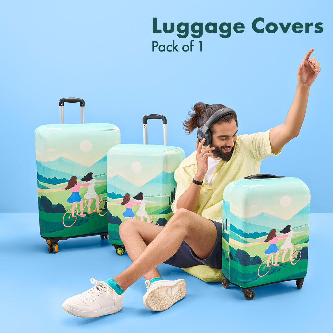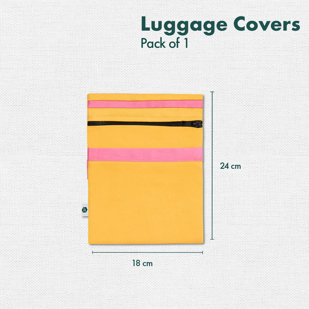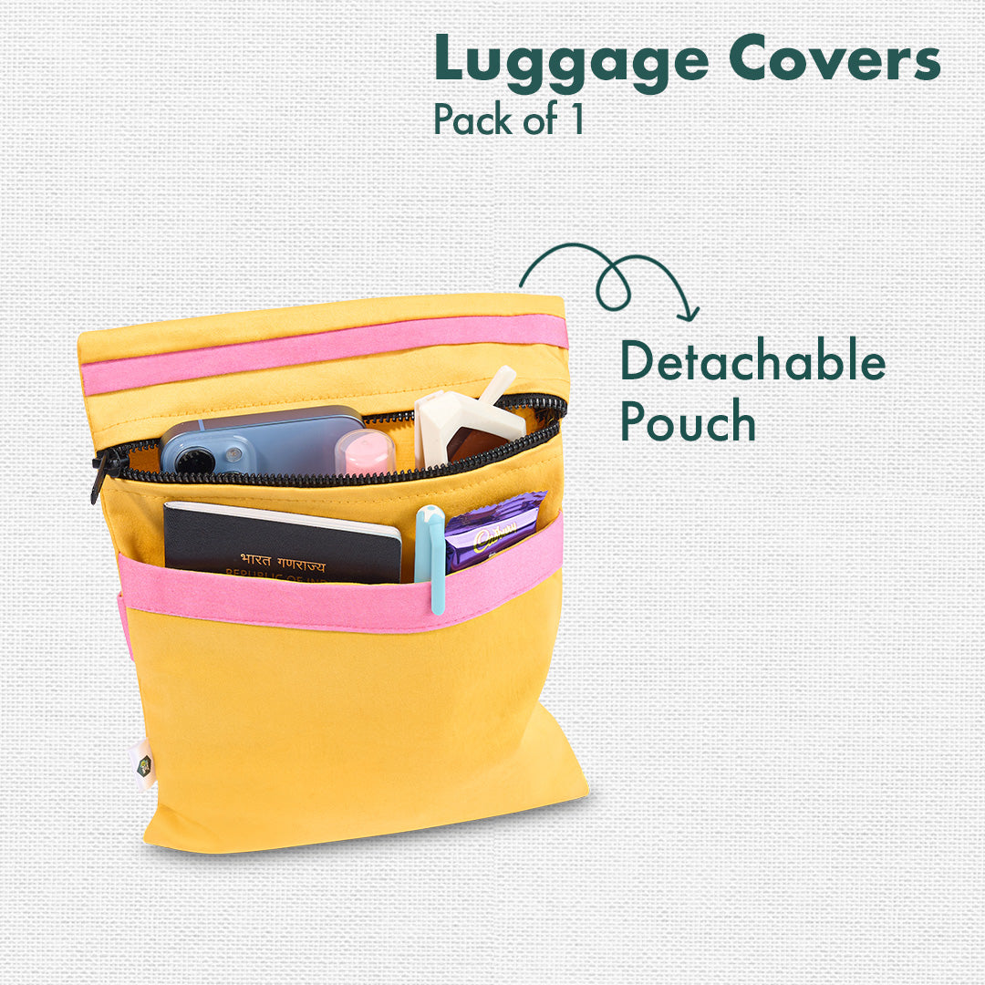 Say sayonara to the days of your plain suitcase blending into the crowd! Give it a fresh makeover with hexafun's vibrant and funky luggage cover, featuring a detachable pouch that’s a travel game-changer. Stash your must-haves while jet-setting. Your suitcase will stand out like a celebrity on the conveyor belt, turning heads and sparking envy wherever you go. Behold for Making Memories! Luggage Cover With Detachable Pouch, 100% Organic Cotton Lycra, Small Size, Pack of 1.