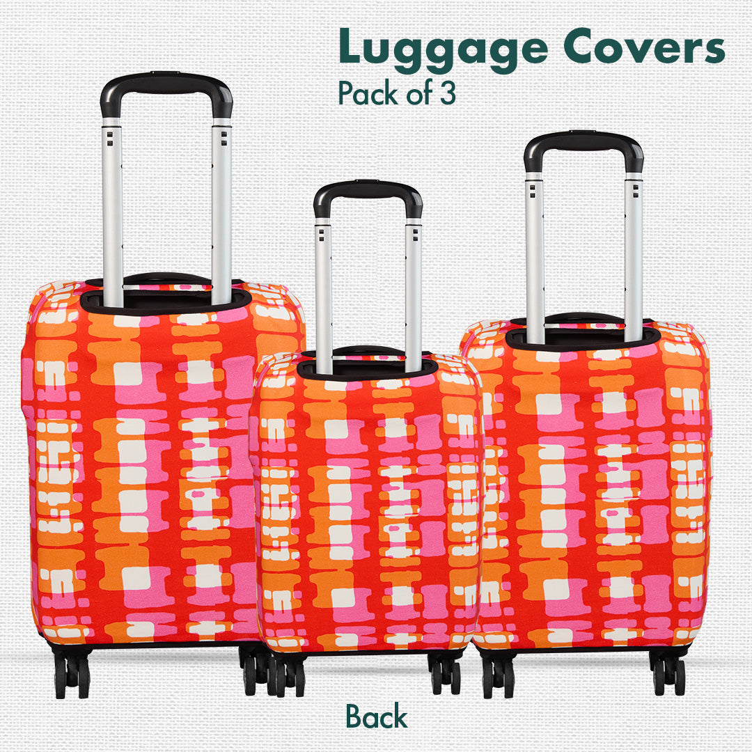 Say sayonara to the days of your plain suitcase blending into the crowd! Give it a fresh makeover with hexafun's vibrant and funky luggage covers. Your suitcase will stand out like a celebrity on the conveyor belt, turning heads and sparking envy wherever you go. Drumroll, please, for Abstract Mania! Luggage Covers, 100% Organic Cotton Lycra, Small+Medium+Large Sizes, Pack of 3.