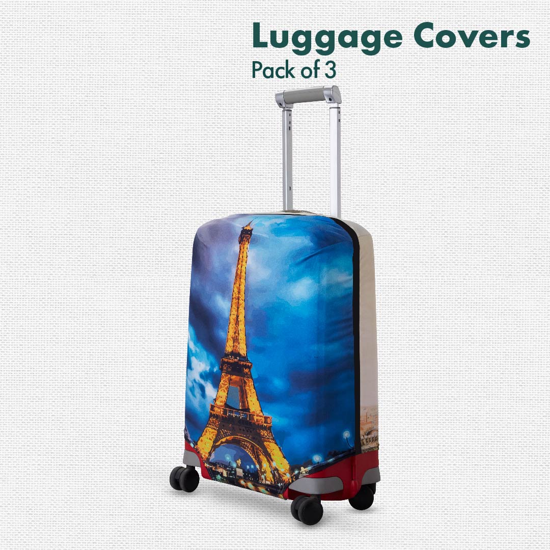An Evening In Paris! Luggage Covers, 100% Organic Cotton Lycra, Small+Medium+Large Sizes, Pack of 3