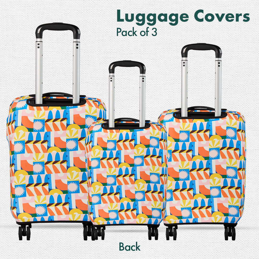 Geometric Vibes! Luggage Covers, 100% Organic Cotton Lycra, Small+Medium+Large Sizes, Pack of 3