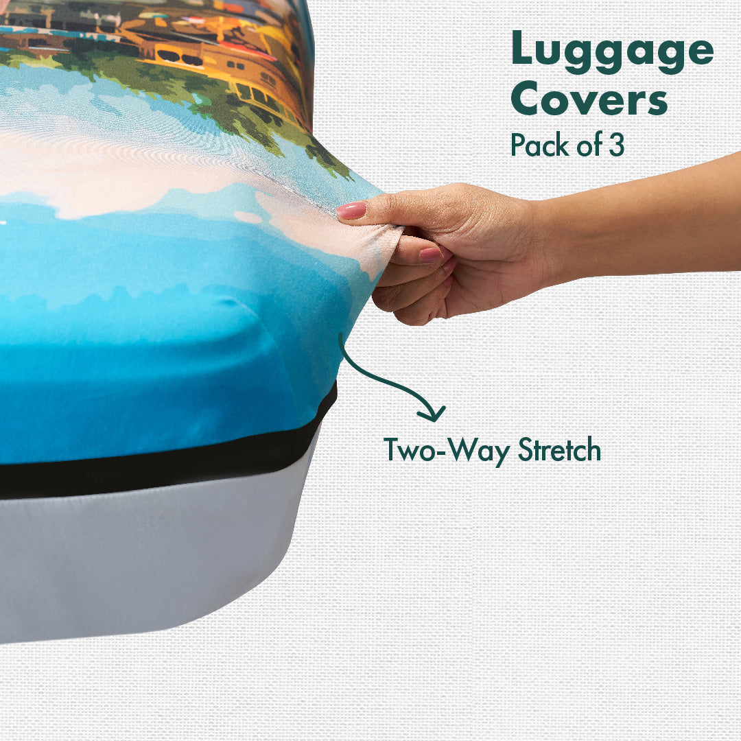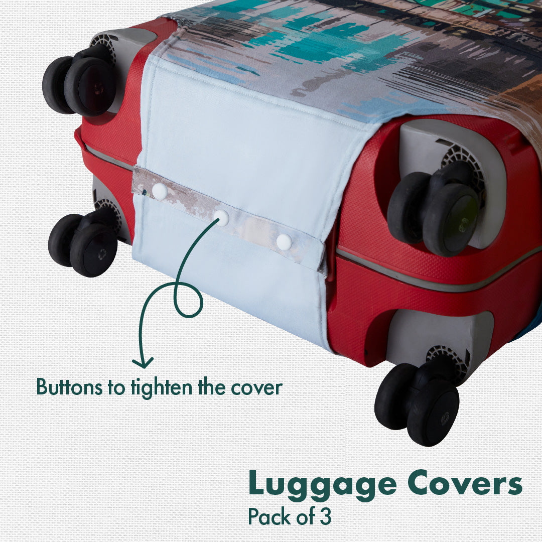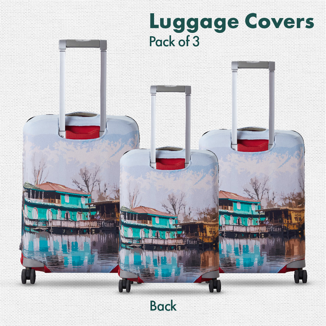Kashmir Calling! Luggage Covers, 100% Organic Cotton Lycra, Small+Medium+Large Sizes, Pack of 3