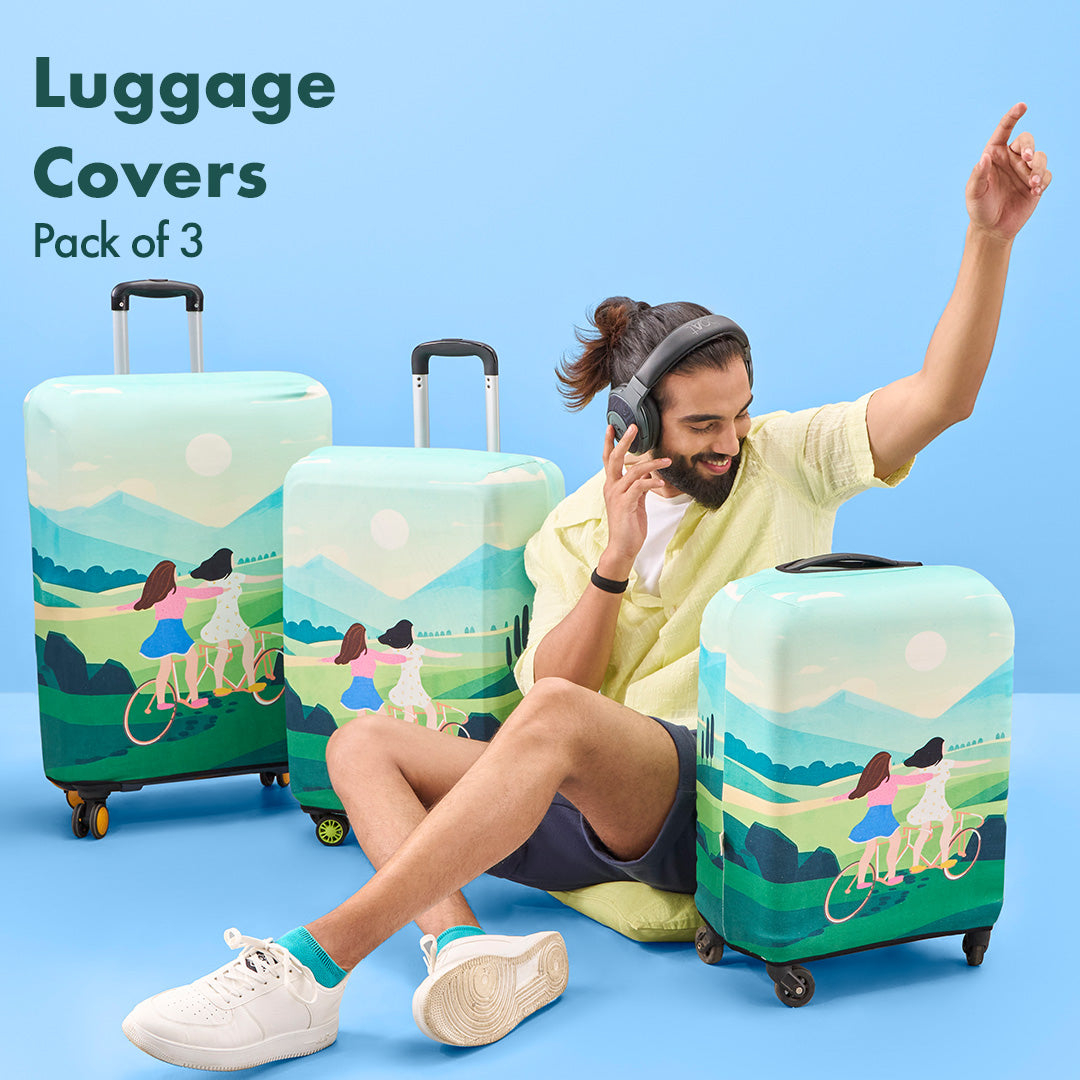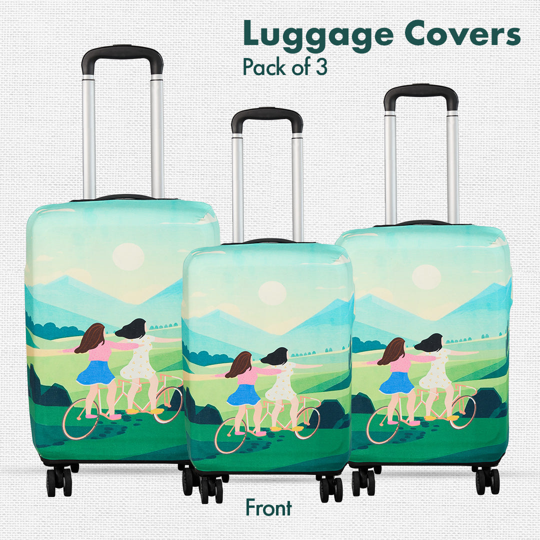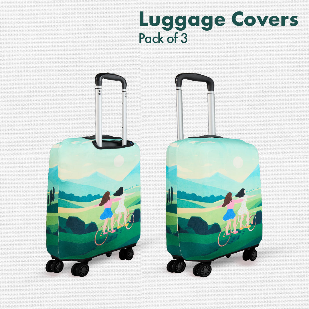 Making Memories! Luggage Covers, 100% Organic Cotton Lycra, Small+Medium+Large Sizes, Pack of 3