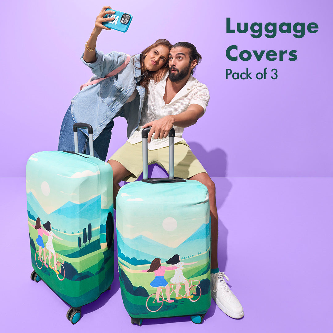 Say sayonara to the days of your plain suitcase blending into the crowd! Give it a fresh makeover with hexafun's vibrant and funky luggage covers. Your suitcase will stand out like a celebrity on the conveyor belt, turning heads and sparking envy wherever you go. Introducing the Making Memories! Luggage Covers, 100% Organic Cotton Lycra, Small+Medium+Large Sizes, Pack of 3.