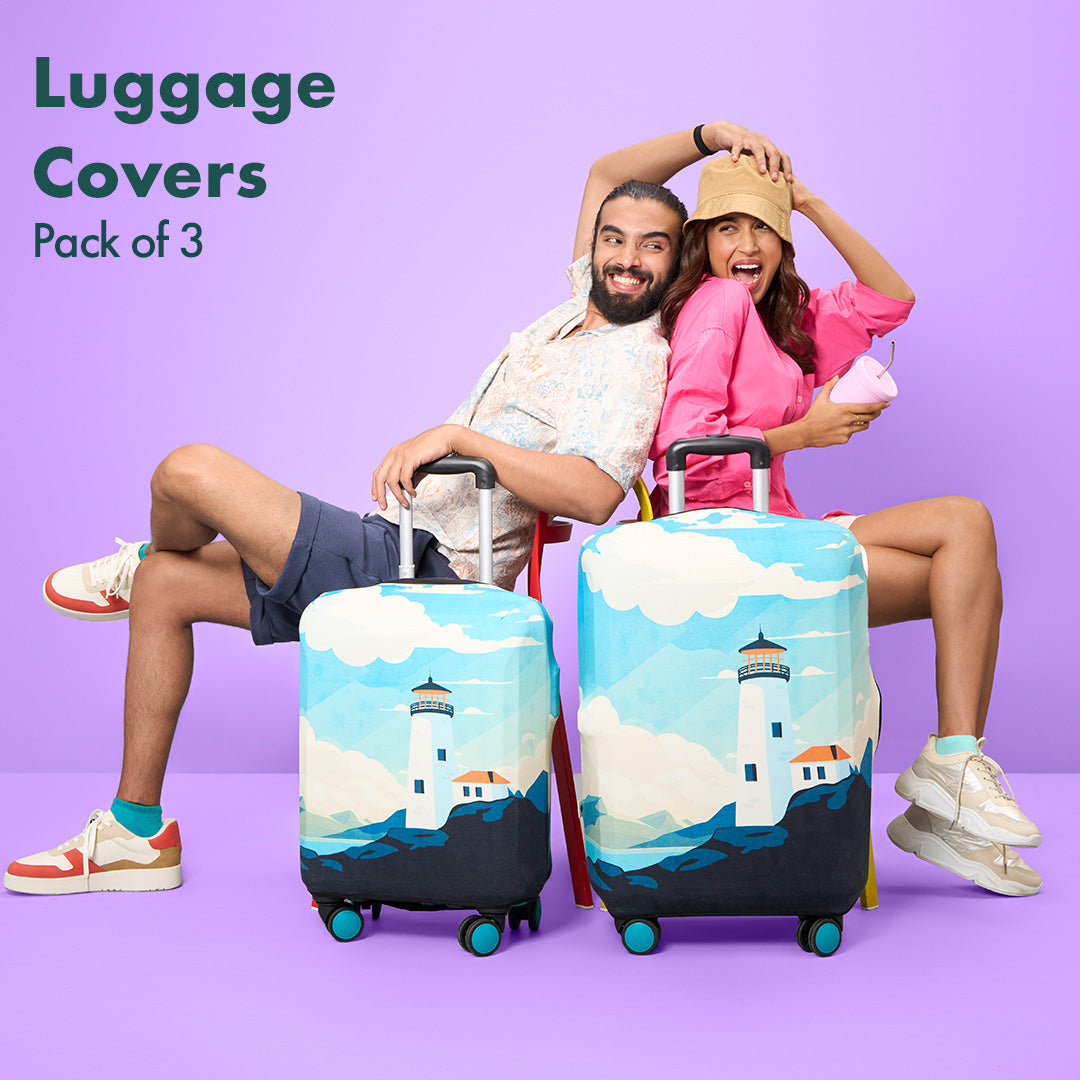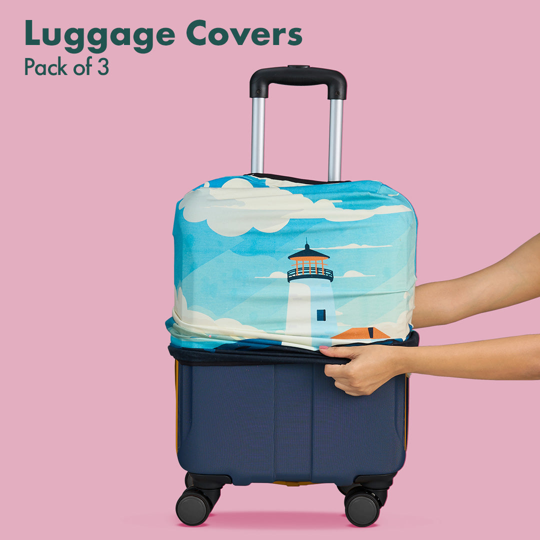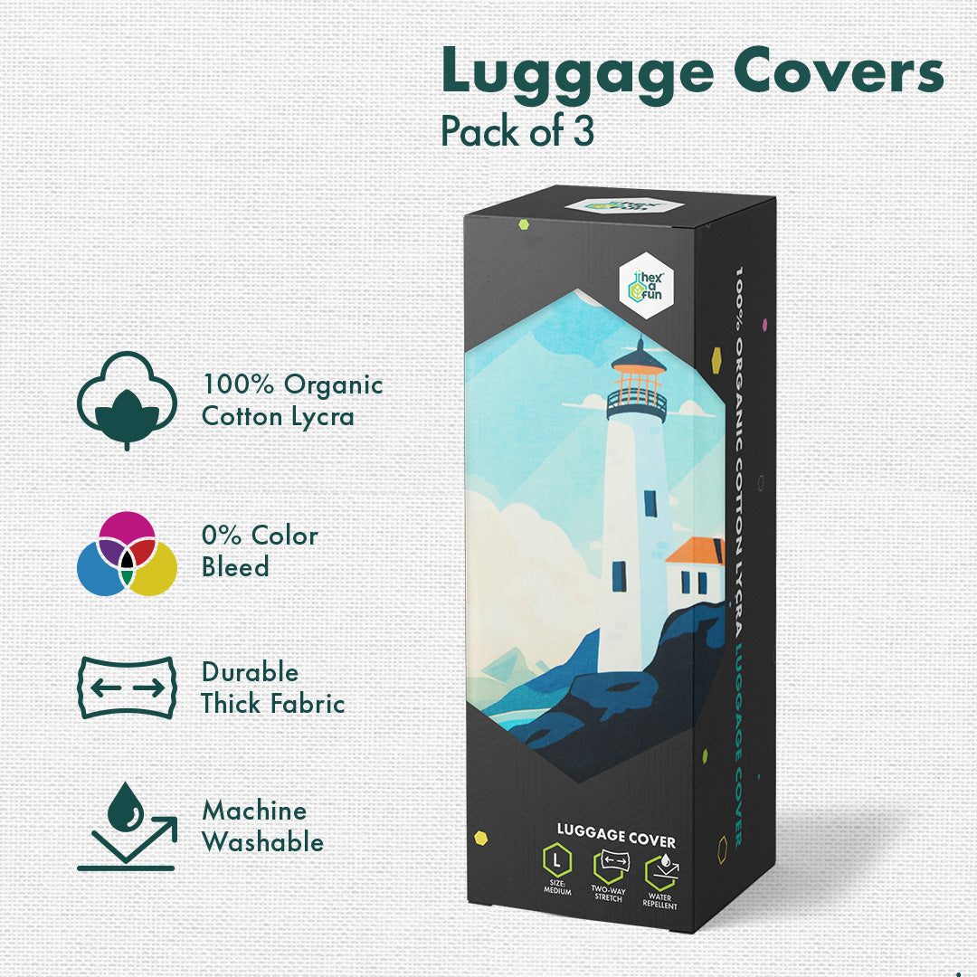 Say sayonara to the days of your plain suitcase blending into the crowd! Give it a fresh makeover with hexafun's vibrant and funky luggage covers. Your suitcase will stand out like a celebrity on the conveyor belt, turning heads and sparking envy wherever you go. Drumroll, please, for Vintage Lighthouse! Luggage Covers, 100% Organic Cotton Lycra, Small+Medium+Large Sizes, Pack of 3.