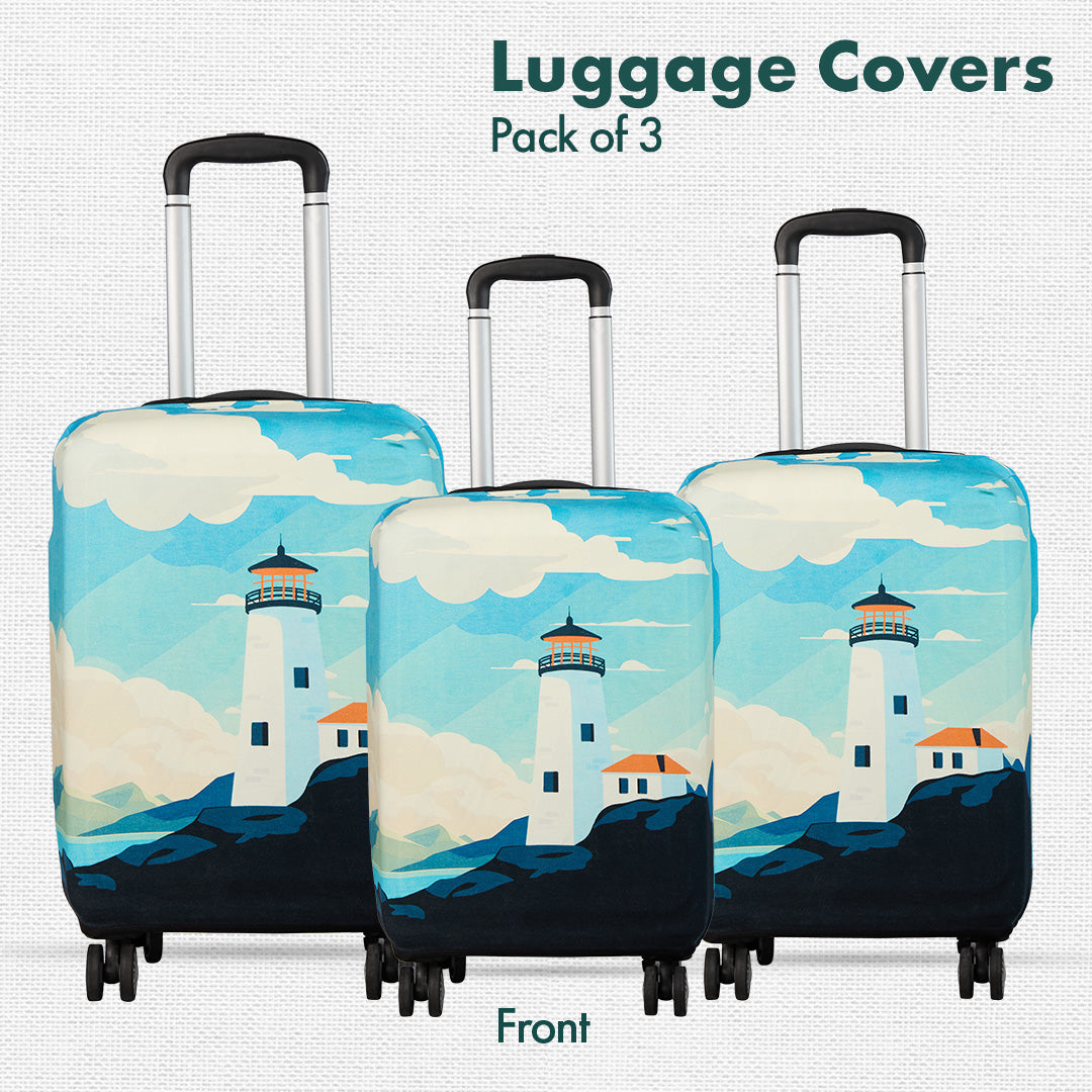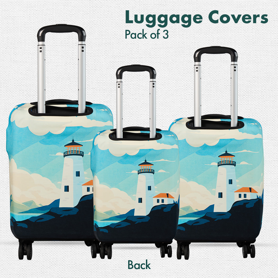 Vintage Lighthouse! Luggage Covers, 100% Organic Cotton Lycra, Small+Medium+Large Sizes, Pack of 3