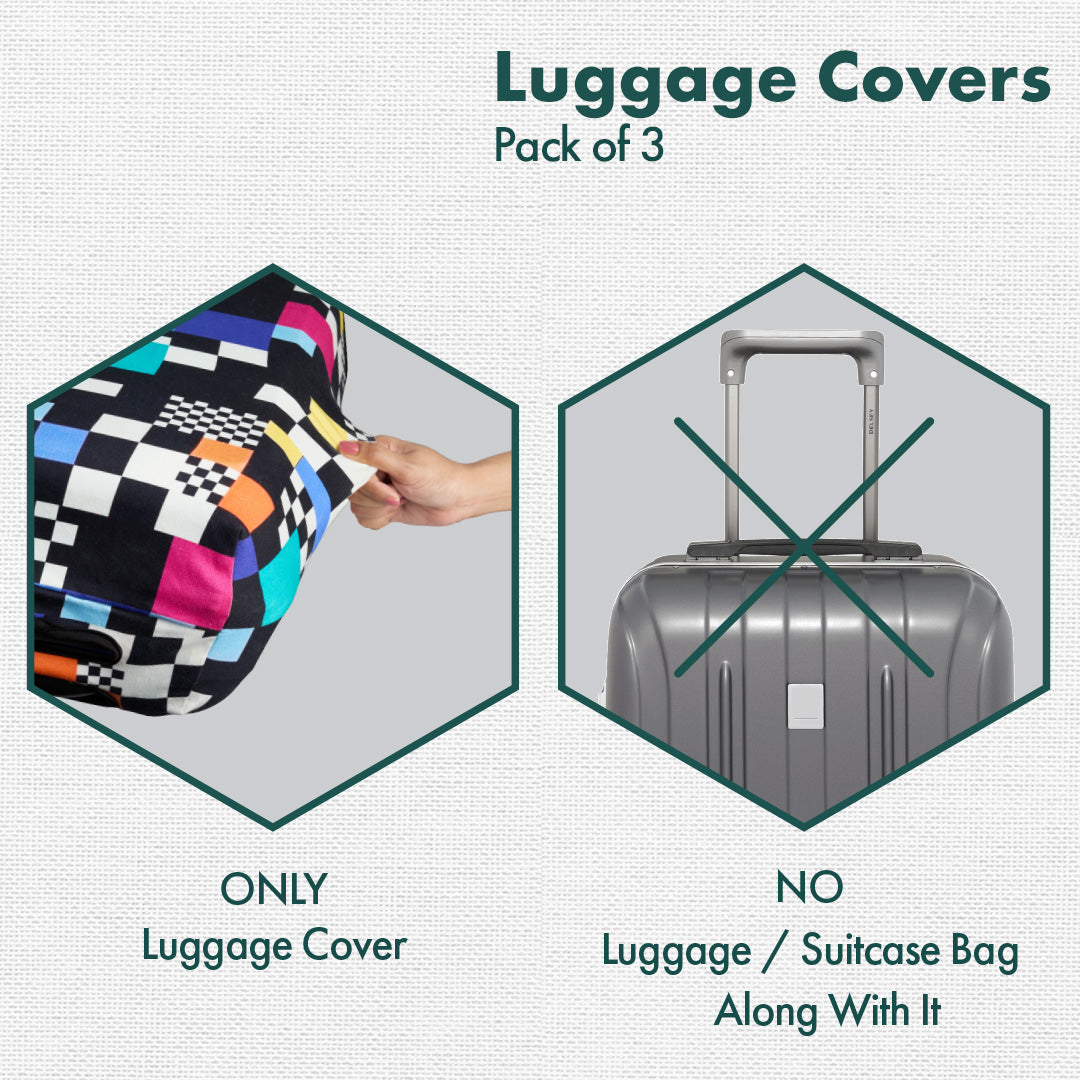Glitching! Luggage Covers With Detachable Pouch, 100% Organic Cotton Lycra, Small+Medium+Large Sizes, Pack of 3