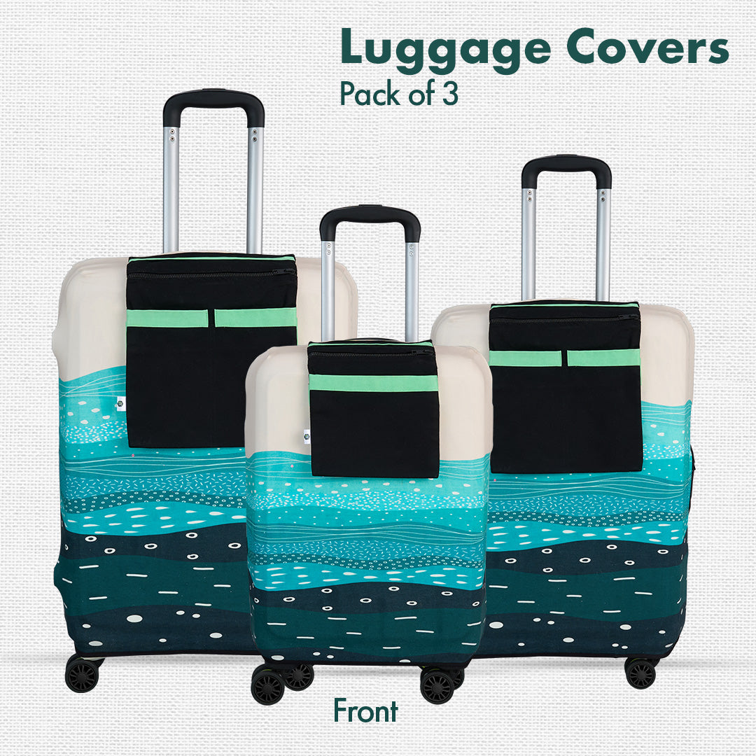 Holiday Calling! Luggage Covers With Detachable Pouch, 100% Organic Cotton Lycra, Small+Medium+Large Sizes, Pack of 3