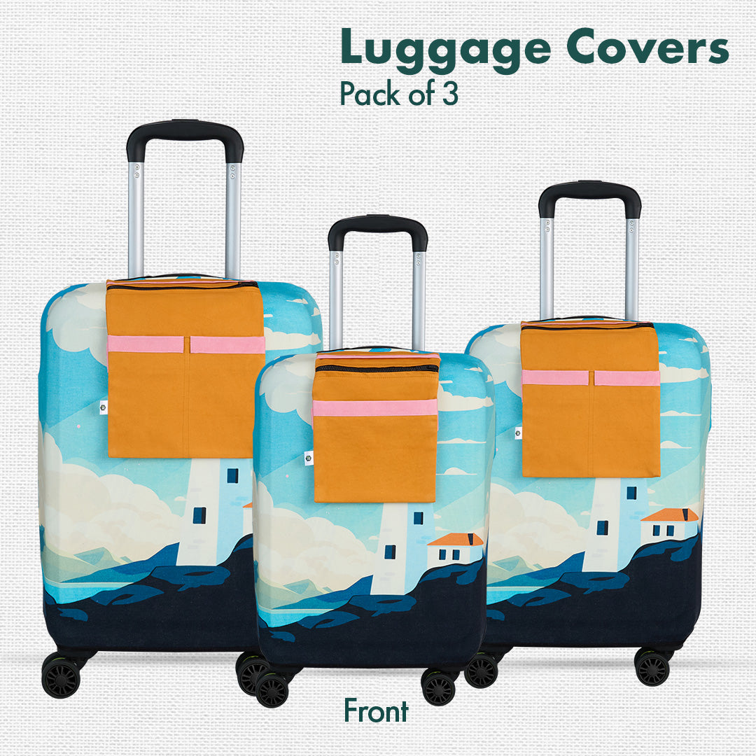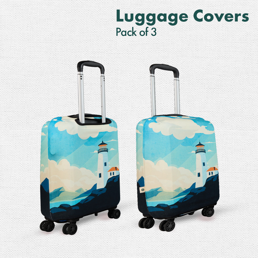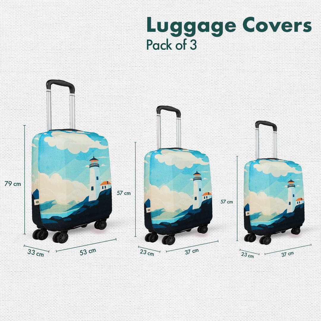 Vintage Lighthouse! Luggage Covers With Detachable Pouch, 100% Organic Cotton Lycra, Small+Medium+Large Sizes, Pack of 3