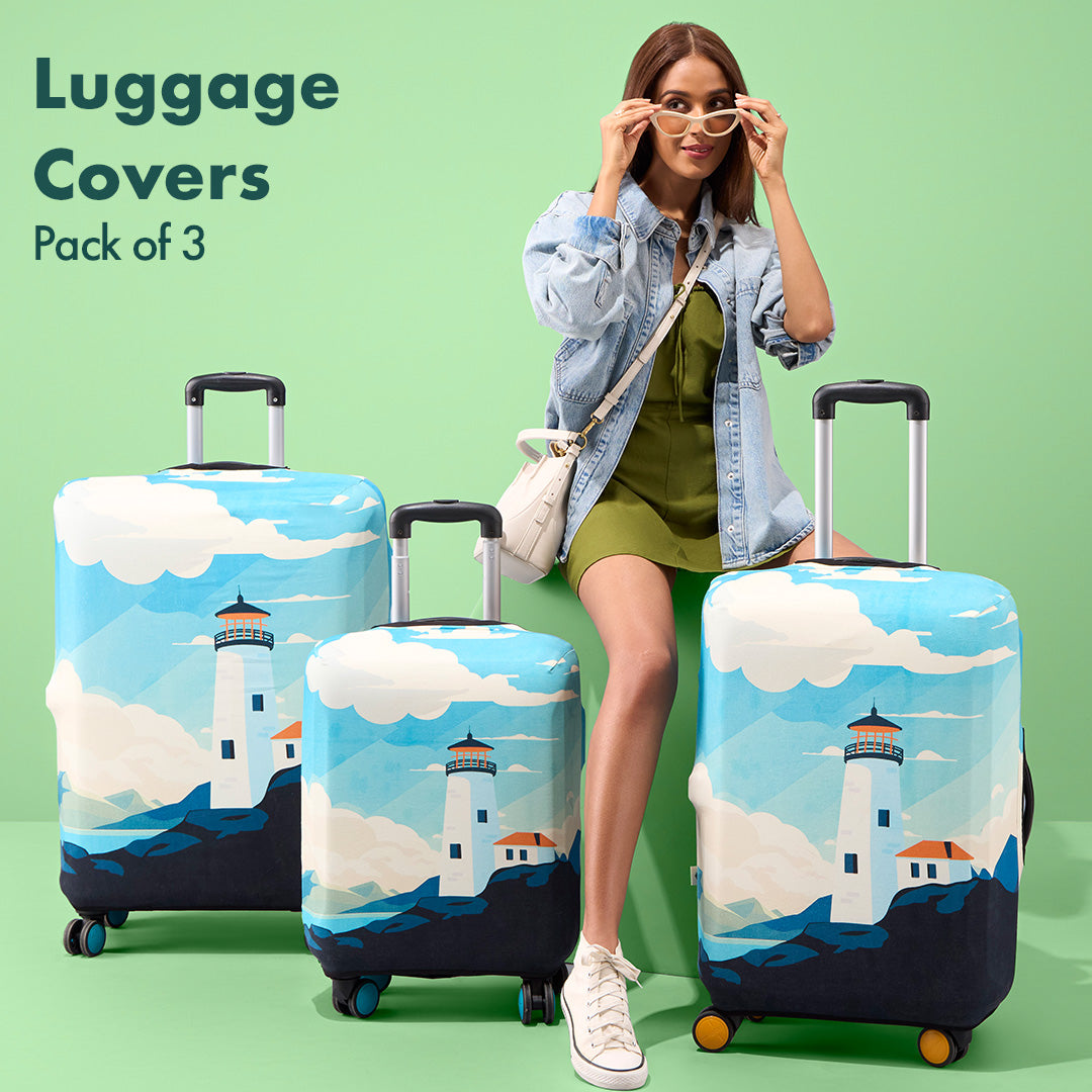 Say sayonara to the days of your plain suitcase blending into the crowd! Give it a fresh makeover with hexafun's vibrant and funky luggage cover, featuring a detachable pouch that’s a travel game-changer. Stash your must-haves while jet-setting. Your suitcase will stand out like a celebrity on the conveyor belt, turning heads and sparking envy wherever you go. Drumroll, please, for Vintage Lighthouse! Luggage Covers With Detachable Pouch, 100% Organic Cotton Lycra, Small+Medium+Large Sizes, Pack of 3.