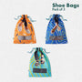 Bid farewell to the ugly, bulky shoe box and welcome shoe bags into your life. Thanks to hexafun, your shoes have found their perfect right swipe. After a day of running helter-skelter, your shoes can take shelter anywhere. Spotlighting the Boot-camp! Men's Shoe Bag, 100% Organic Cotton, Pack of 3.