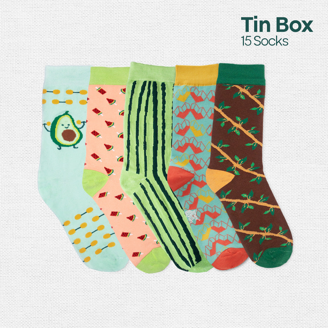 What is the perfect gift? One that is full of quirk and intrigue. One that fills your loved ones' lives with joy and wonder, right? We too agree! 'Coz that’s exactly what we’ve got for your loved ones on your behalf. A gift that is nothing less than perfect. Make a way for Trunk Call! Tin Gift Box, Unisex Crew Length Socks, 100% Organic Cotton, Box Of 15.
