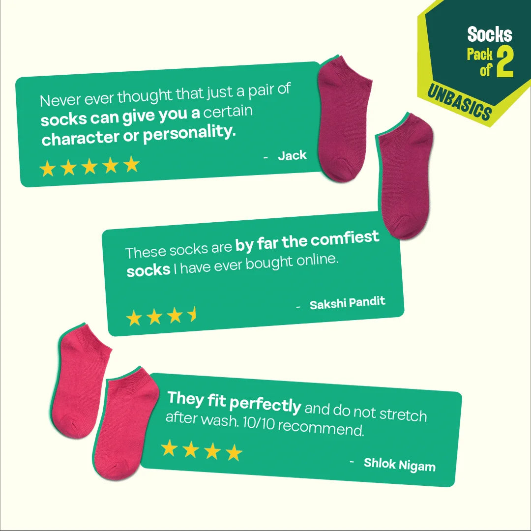 Say goodbye to dull, boring socks and hello to fun. Hexafun to the rescue! And with us begins a new era full of colors no one’s ever seen. An era that’s here to stay forever. Step into a world of vibrant charm with our Berry Mix! Unisex Socks, 100% Organic Cotton, Ankle Length, Pack of 2.