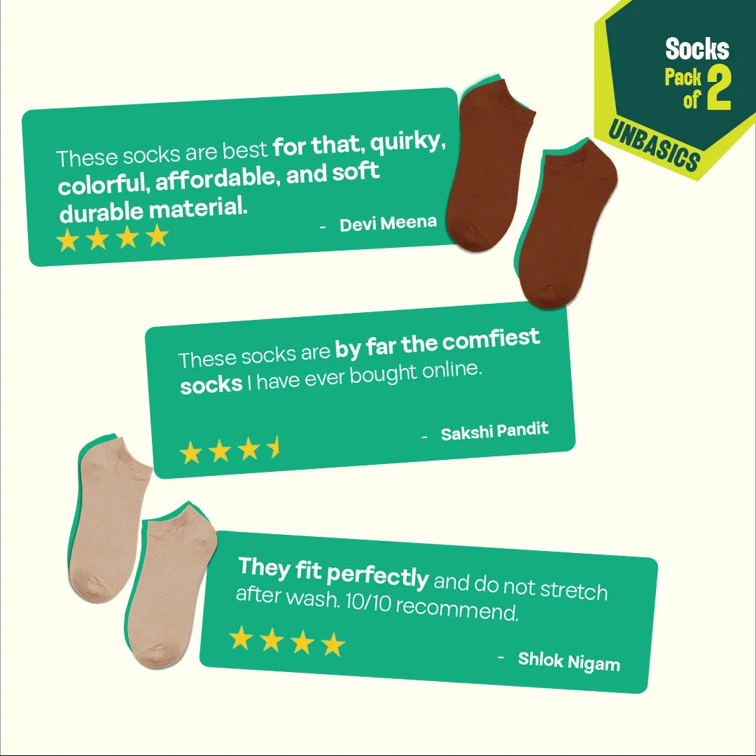 Dusky Latte! Unisex Socks, 100% Organic Cotton, Ankle Length, Pack of 2