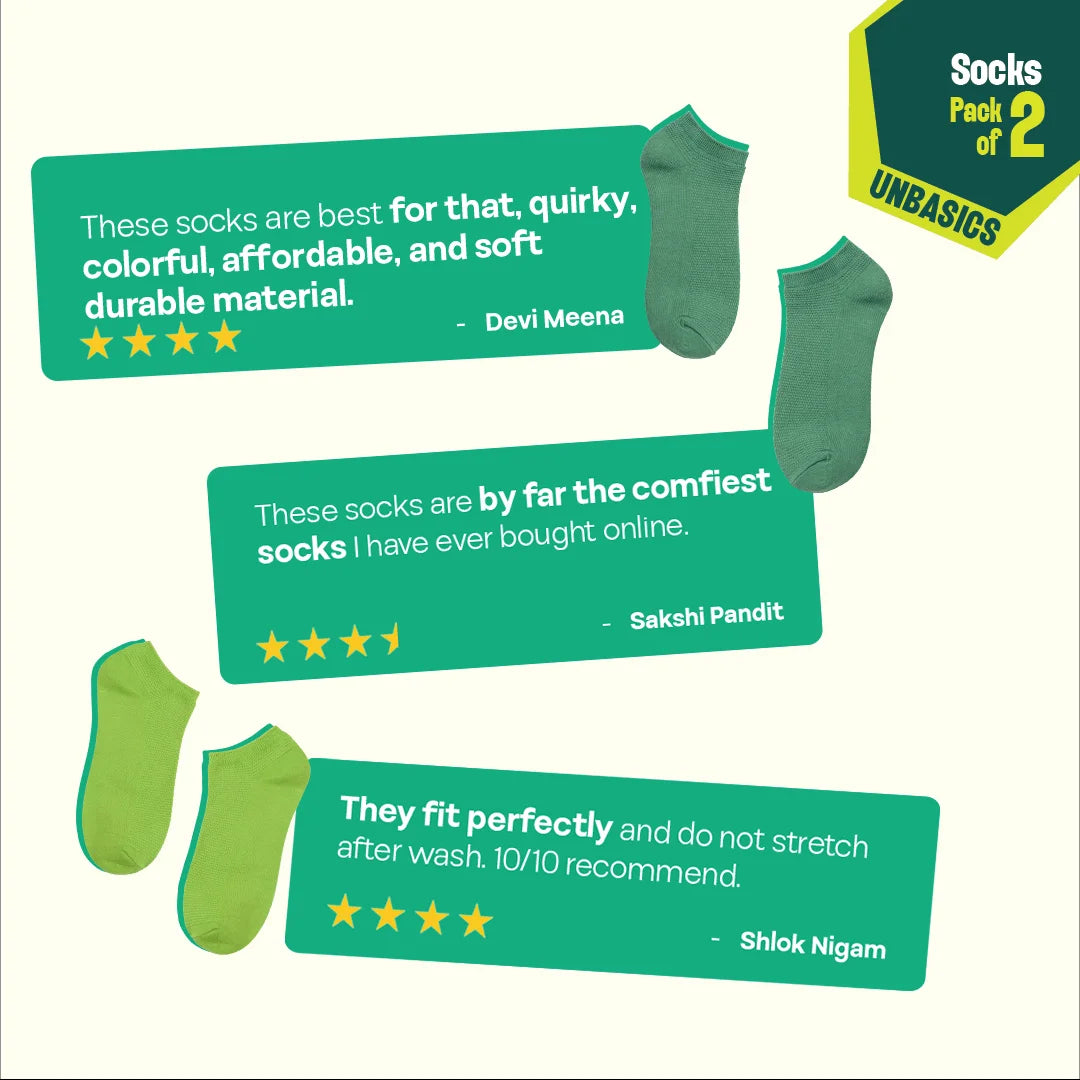 Greeni-fic! Unisex Socks, 100% Organic Cotton, Ankle Length, Pack of 2