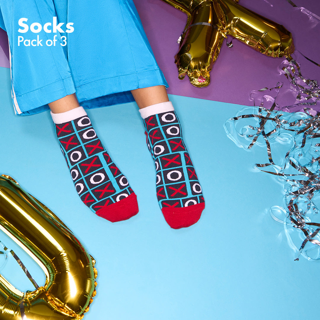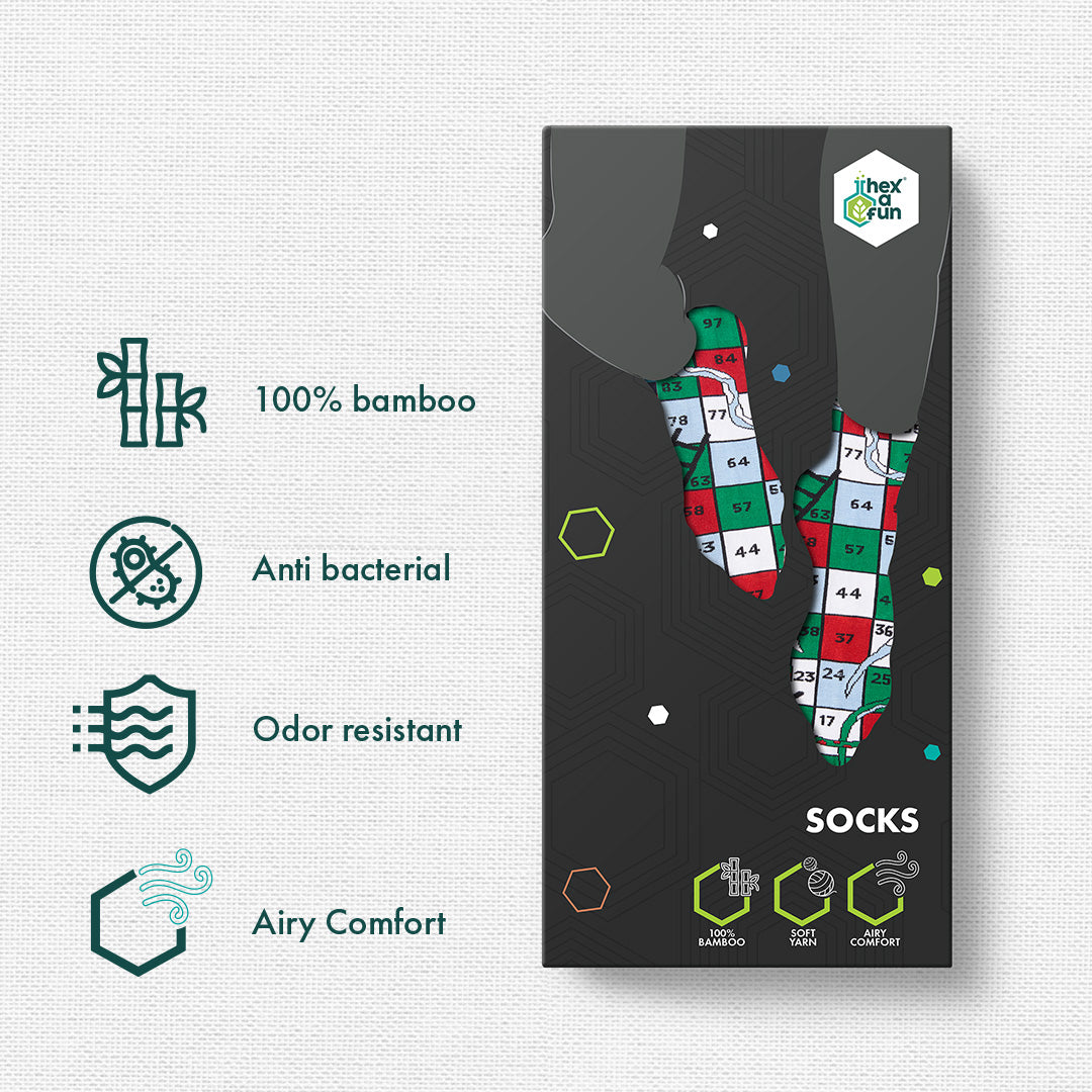 Say goodbye to dull, boring socks and hello to fun. hexafun to the rescue! And with us begins a new era full of color, playfulness, and the quirkiest designs anyone’s ever seen. An era that’s here to stay forever. Showcasing the Game On! Unisex Socks, 100% Bamboo, Ankle Length, Pack of 3.