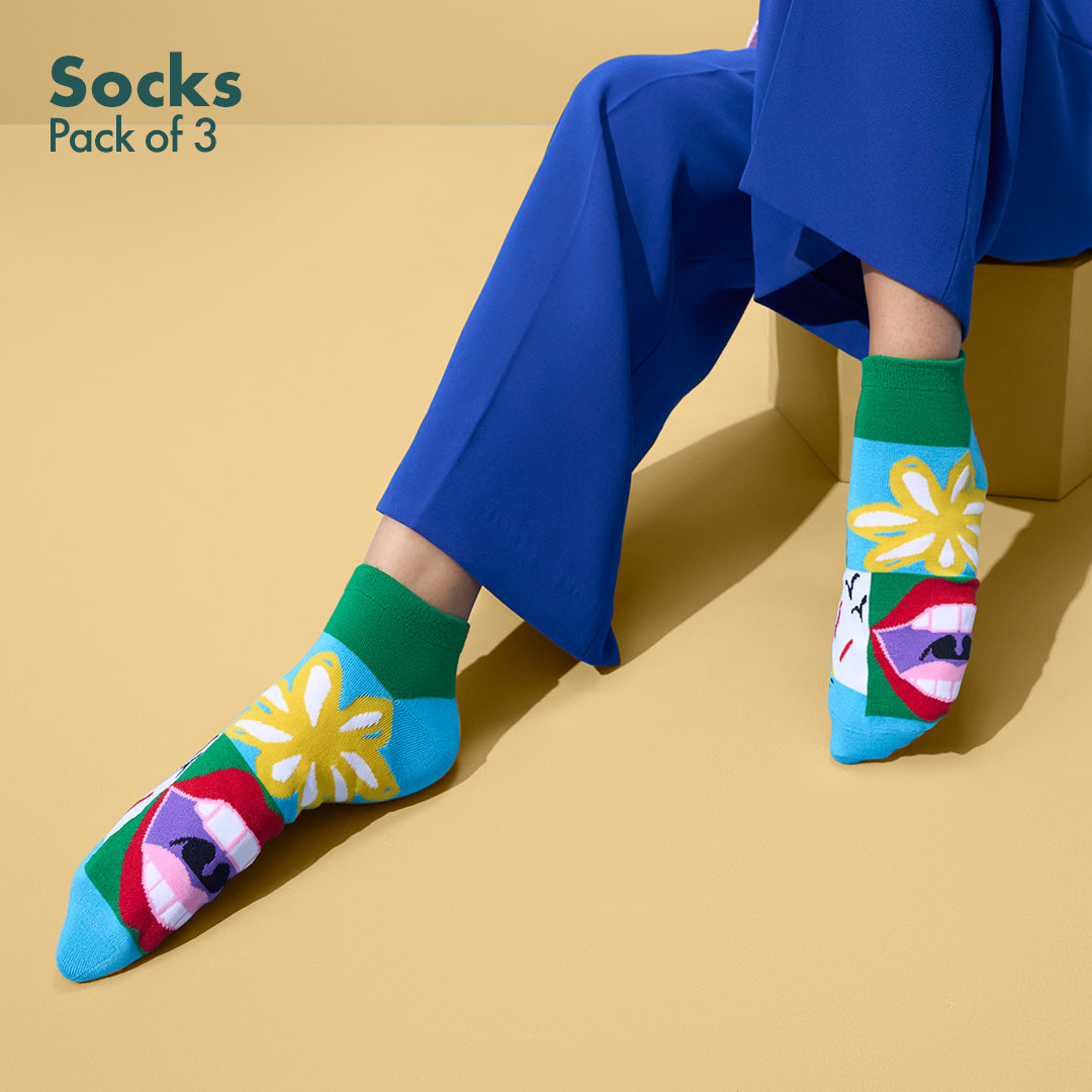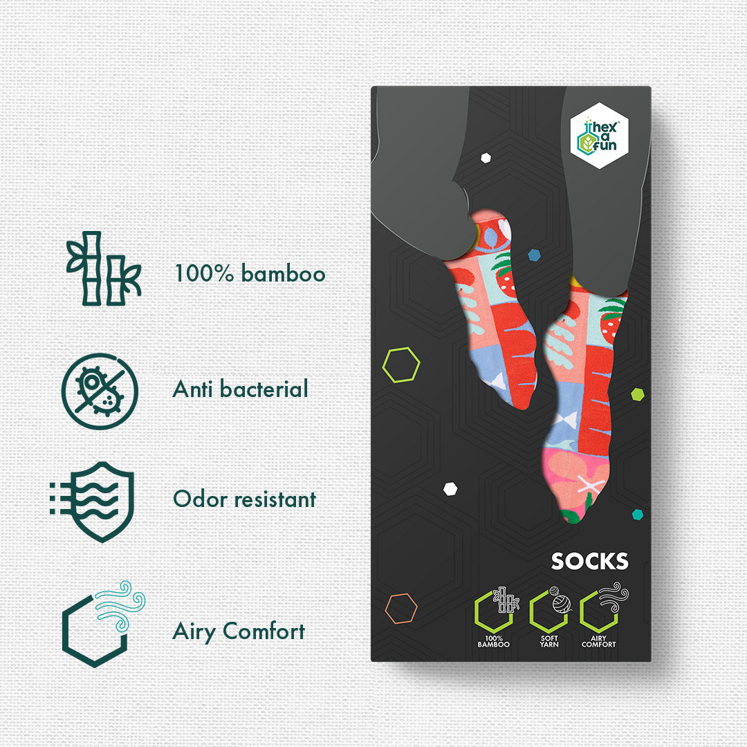 Say goodbye to dull, boring socks and hello to fun. hexafun to the rescue! And with us begins a new era full of color, playfulness, and the quirkiest designs anyone’s ever seen. An era that’s here to stay forever. Presenting the Rainbow Shots! Unisex Socks, 100% Bamboo, Ankle Length, Pack of 3.