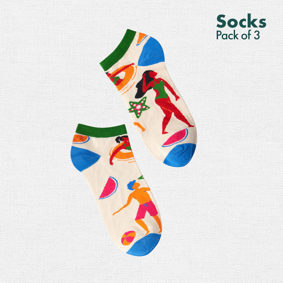 Rainbow Shots! Unisex Socks, 100% Bamboo, Ankle Length, Pack of 3