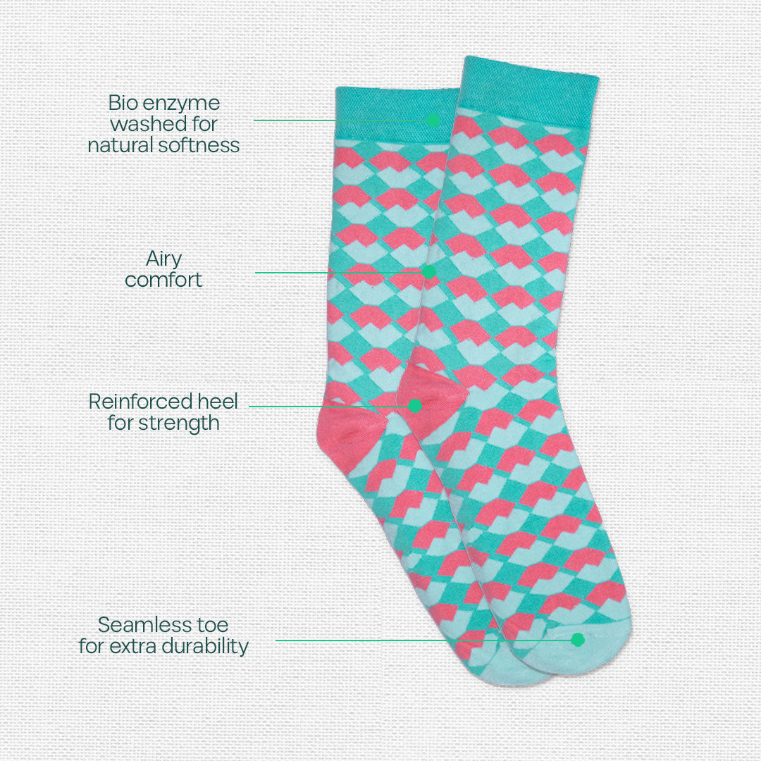 Geometrically Perfect! Unisex Socks, 100% Organic Cotton, Crew Length, Pack of 3
