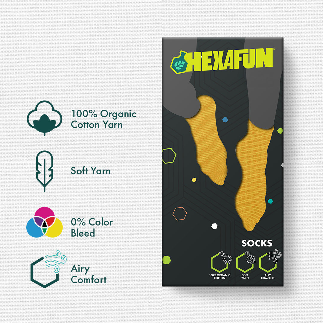 Say goodbye to dull, boring socks and hello to fun. hexafun to the rescue! And with us begins a new era full of colors no one’s ever seen. An era that’s here to stay forever. Infusing your style with a twist of Sky-light! Unisex Socks, 100% Organic Cotton, Crew Length, Pack of 3.