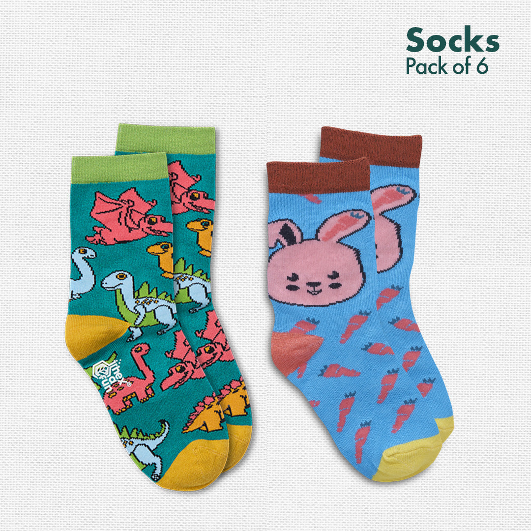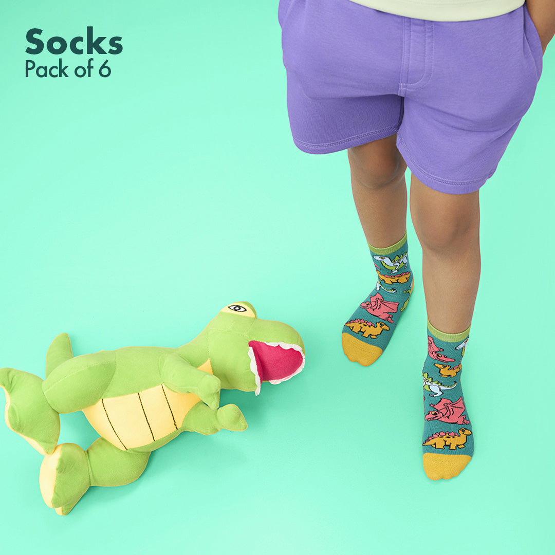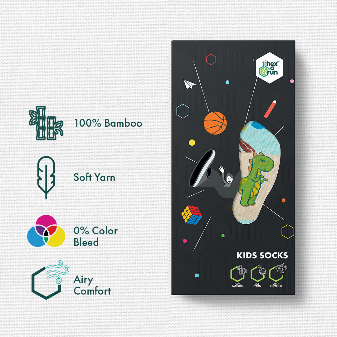Say hello to a new era full of colorful and playful prints of socks for kids. Presenting Roar-some! Unisex Kids Socks, 100% Bamboo, Crew Length, Pack of 6.
