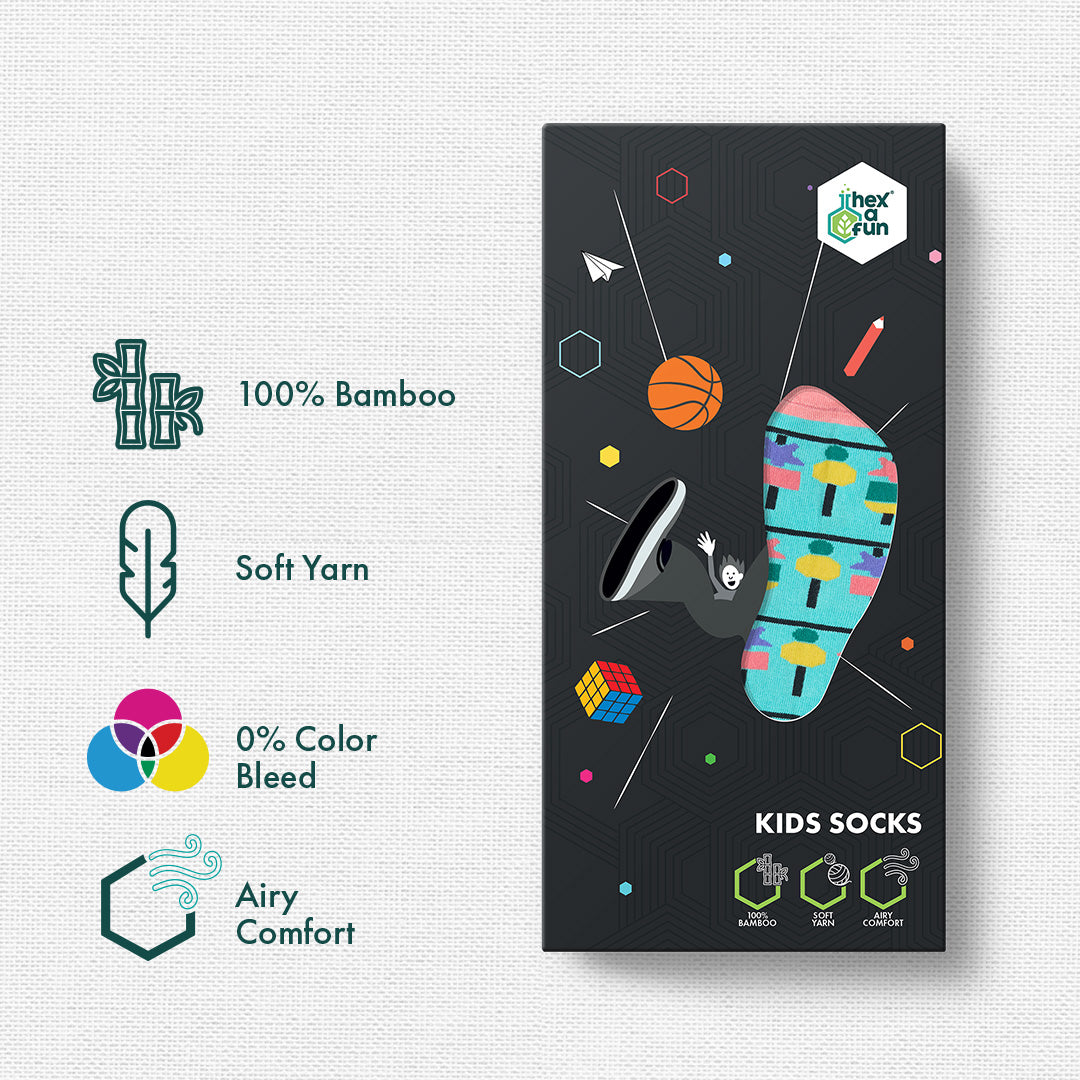 Say hello to a new era full of colorful and playful prints of socks for kids. Presenting Chill Thrill! Unisex Kid's Socks, 100% Bamboo, Crew Length, Pack of 6.