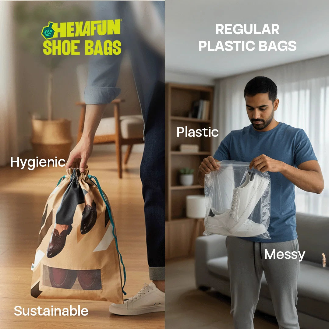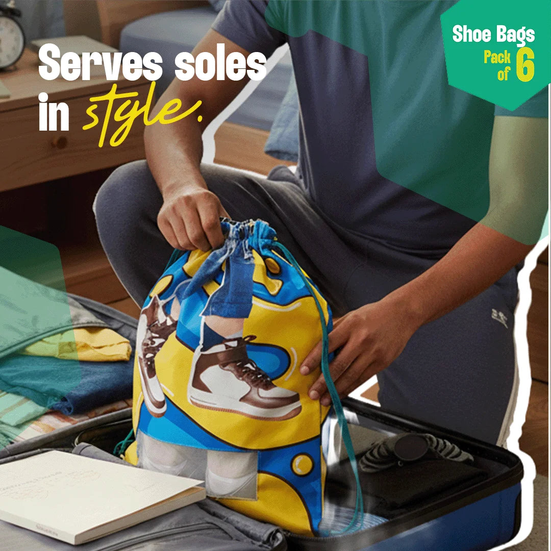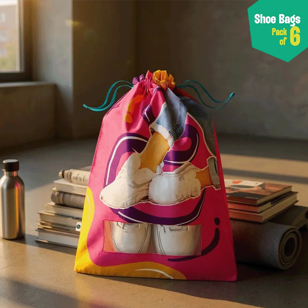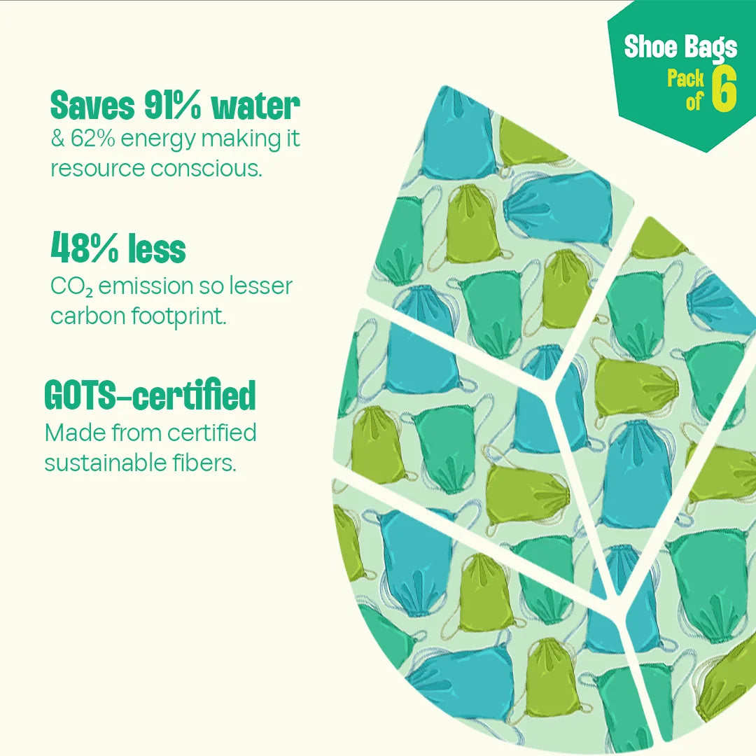 Bid farewell to the ugly, bulky shoe box and welcome shoe bags into your life. Thanks to Hexafun, your shoes have found their perfect right swipe. After a day of running helter-skelter, your shoes can take shelter anywhere. Unfolding the story of The Walking Company! Unisex Shoe Bag, 100% Organic Cotton, Pack of 6.