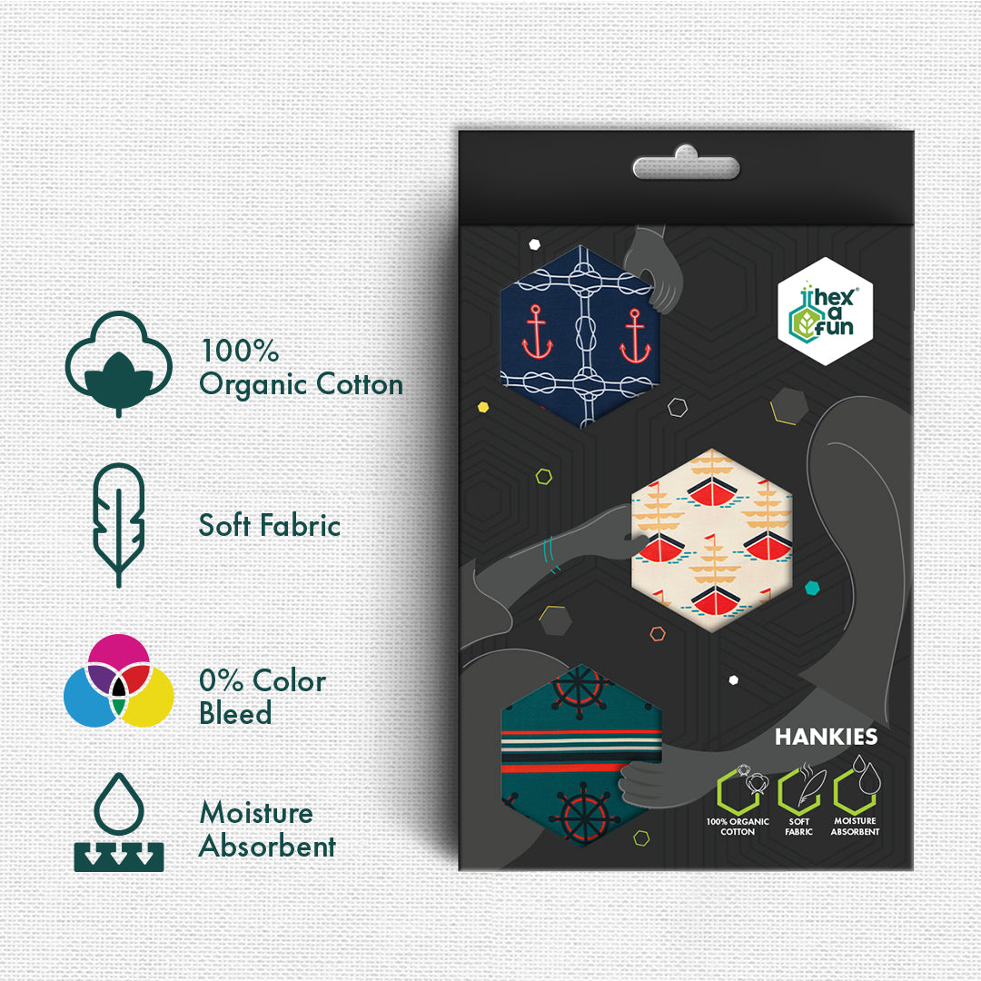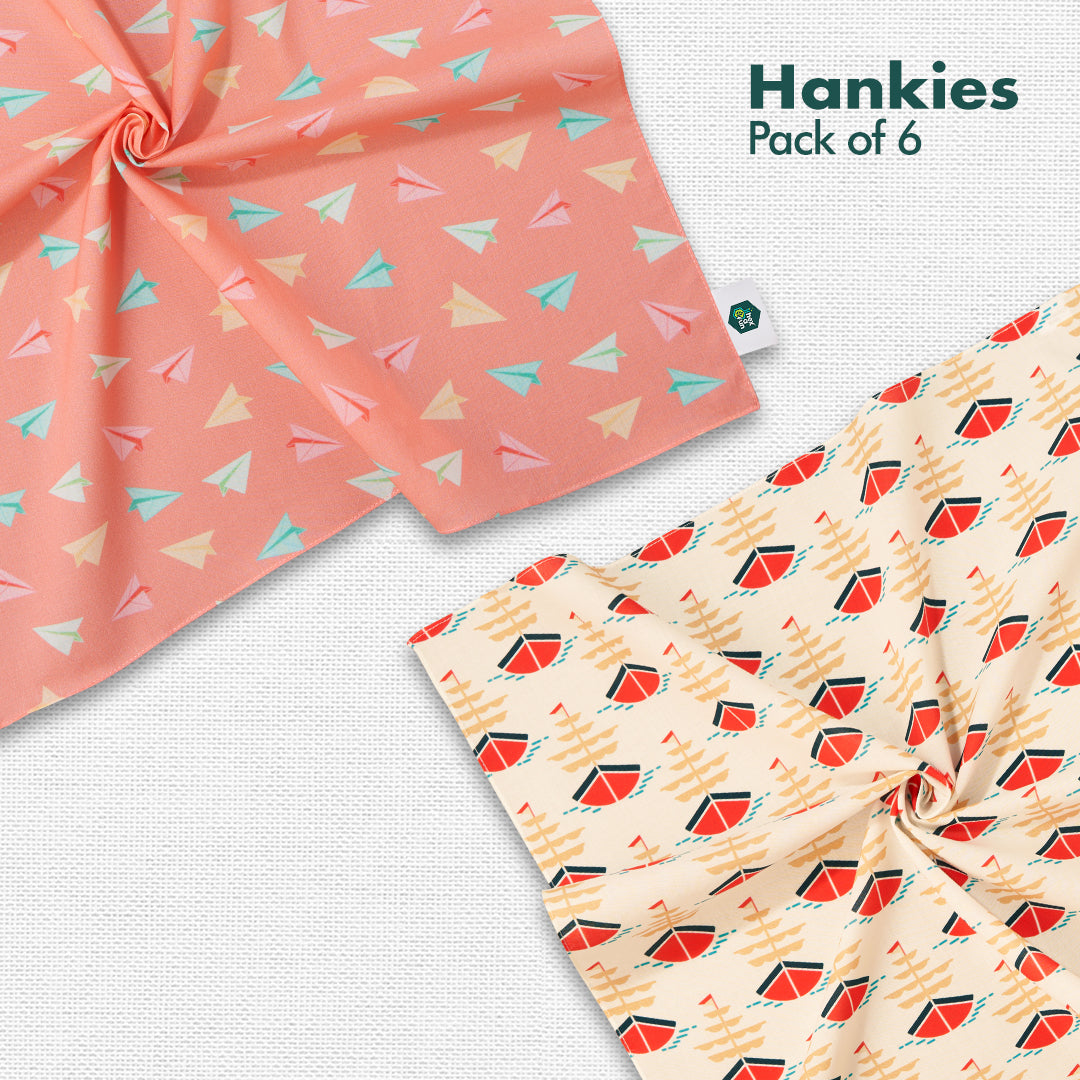 The age of dull, boring, and monotonous hankies ends right here. hexafun to the rescue! And with us begins a new era full of color, playfulness, and the quirkiest prints anyone’s ever seen. The very first of its kind and here to stay forever. Setting the scene for Seas The Day! Women's Hankies, 100% Organic Cotton, Pack of 6.