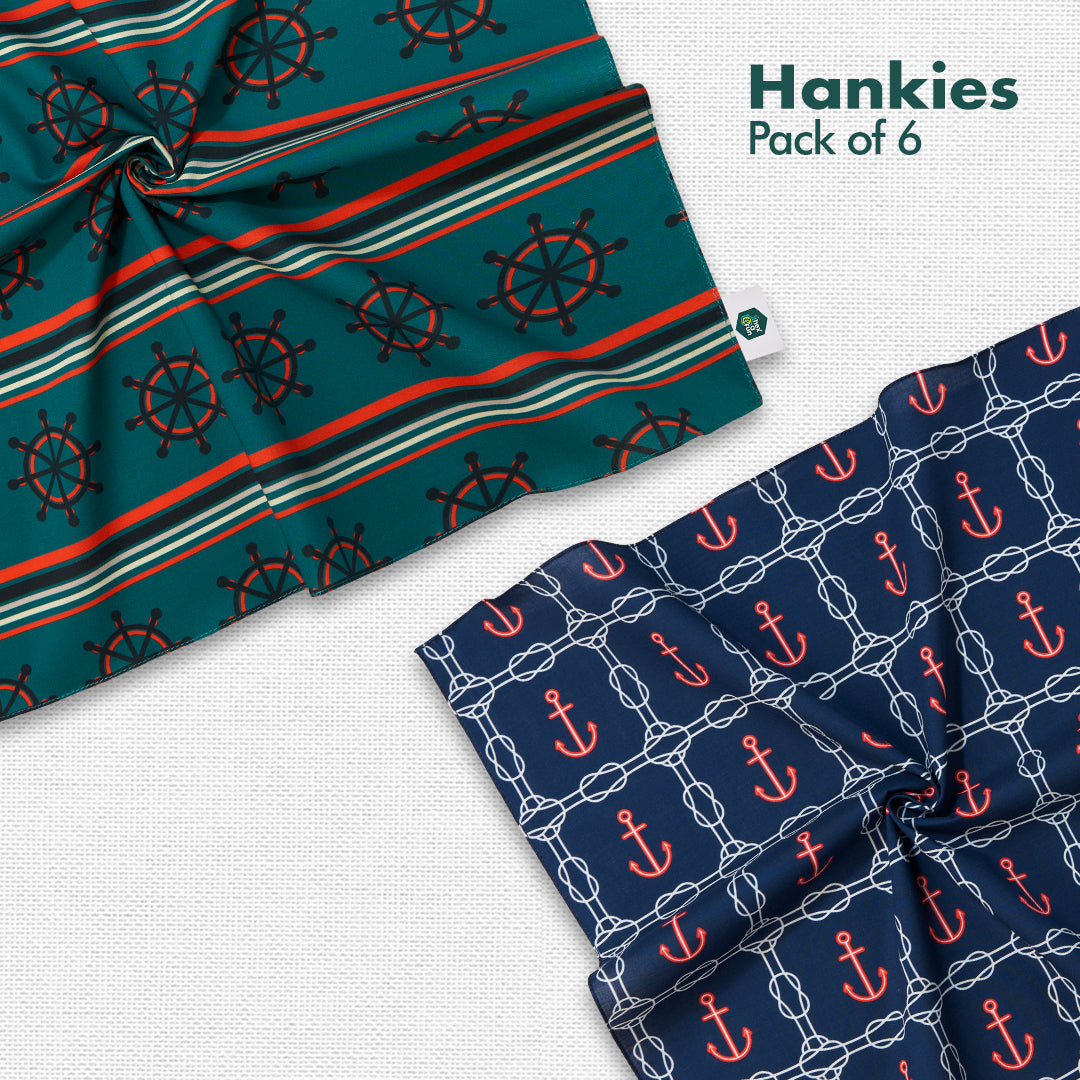 Seas The Day! Unisex Hankies, 100% Organic Cotton, Pack of 6